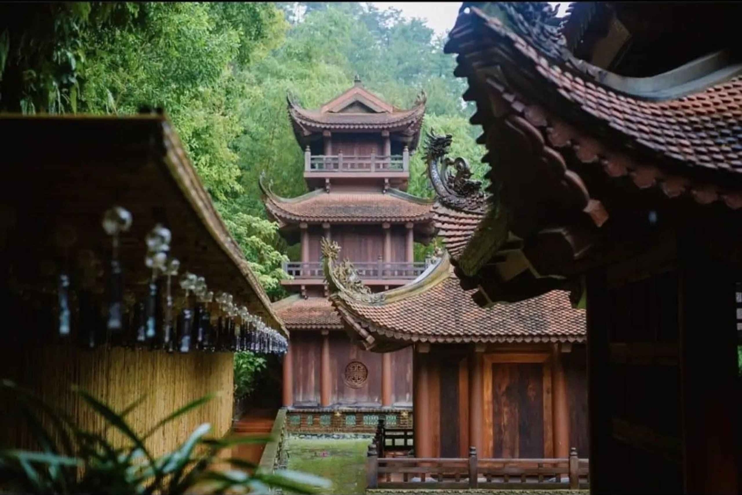 Ammira la posizione unica della pagoda, con la parte posteriore appoggiata alla montagna e la facciata che si affaccia sul lago, creando uno scenario poetico da paese delle fate. Scopri la leggenda di 'Tien Luc Nhac - Hau That Tinh', che significa 'Sei campane musicali davanti, sette stelle dopo'.