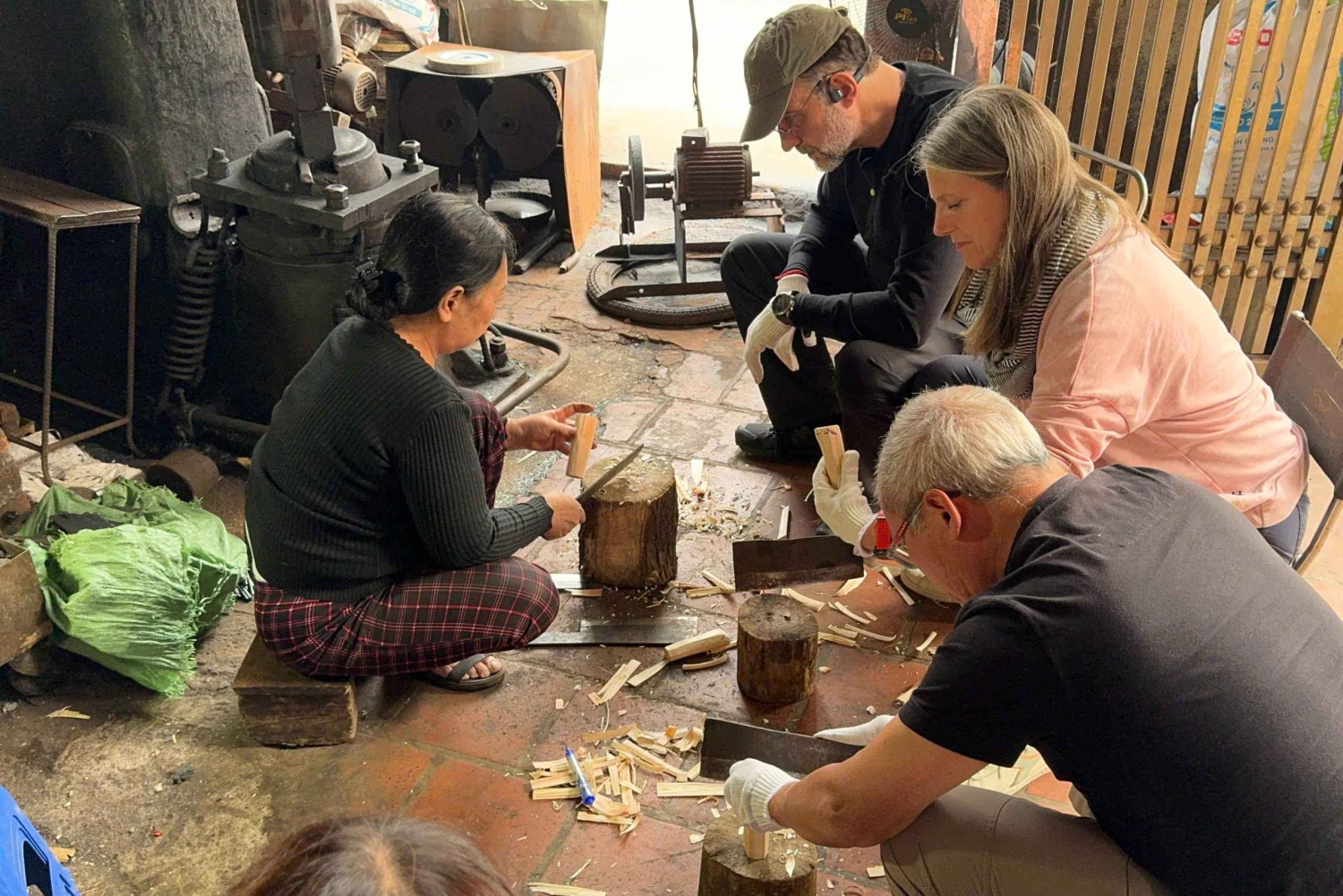 Partecipa a un workshop di fabbricazione di coltelli ad Hanoi in un villaggio storico di fabbri. Impara dai maestri artigiani, forgia la tua lama e crea un manico personalizzato per renderla unica.