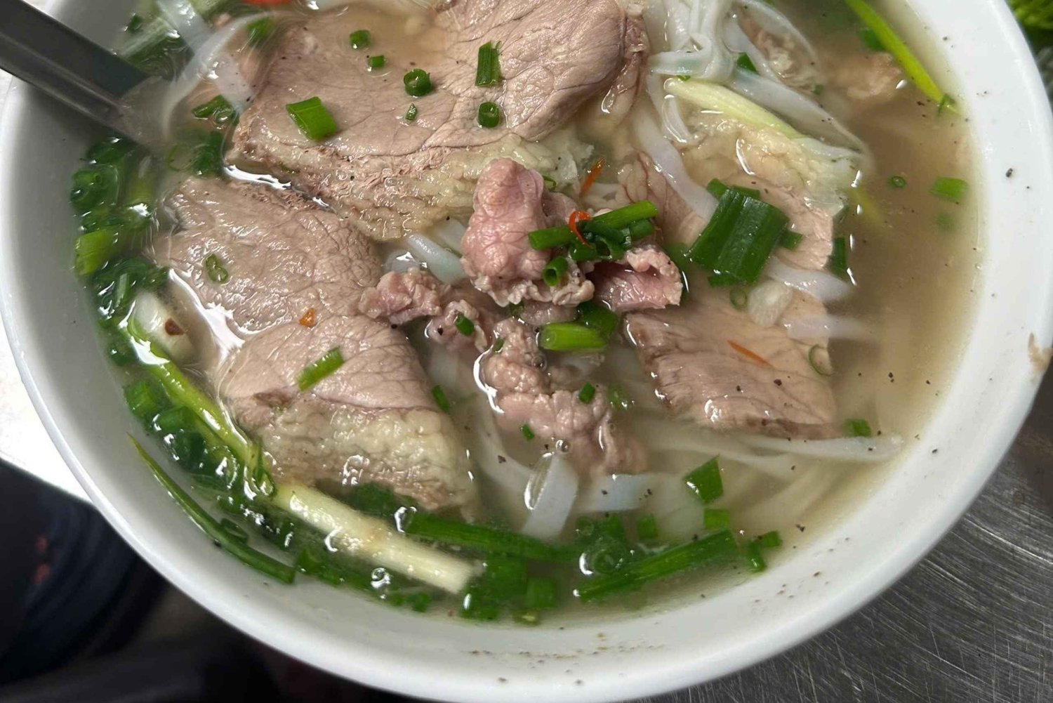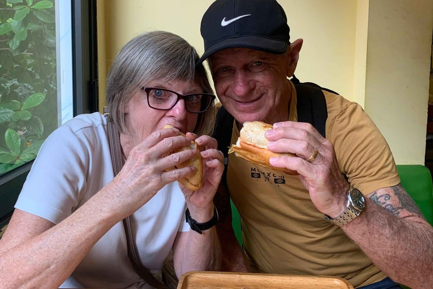 Segui la tua guida locale in vicoli stretti e mercati affollati per assaggiare autentici piatti di strada vietnamiti amati dalla gente del posto.