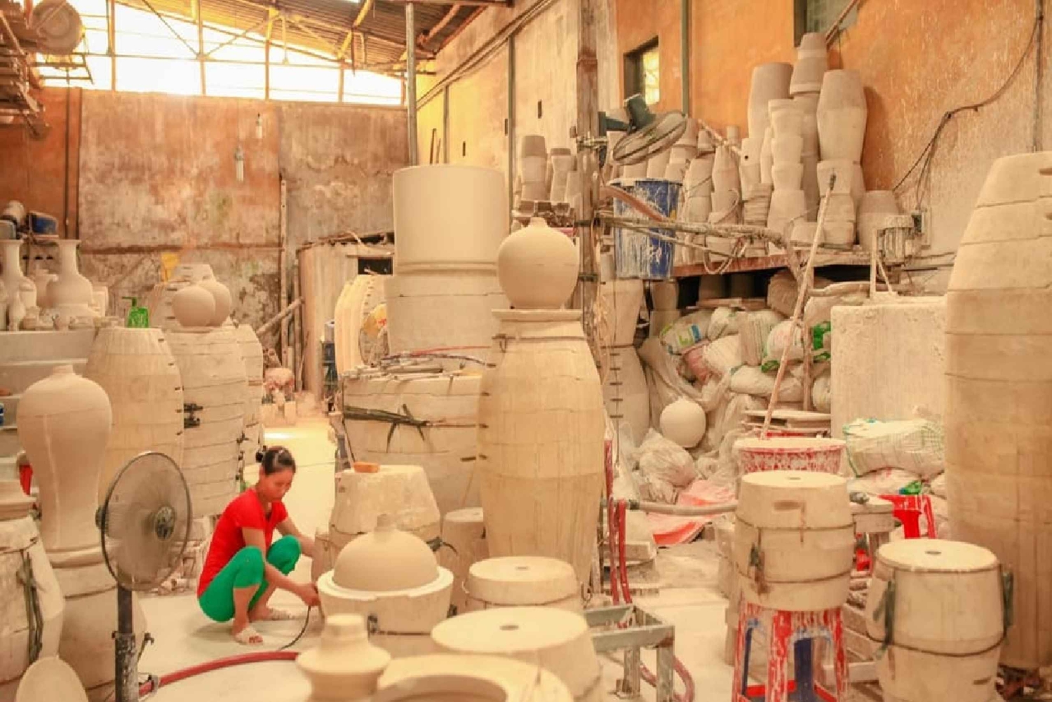 Scopri il villaggio della ceramica di Bat Trang con un tour di mezza giornata da Hanoi. Scopri la storia del villaggio e la sua produzione di ceramica e prova a realizzare il tuo tappo, vaso o ciotola.