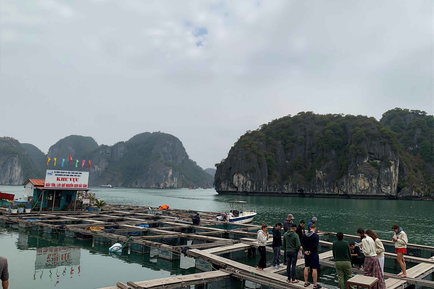 15:00: Dopo la nuotata, visiteremo un allevamento ittico locale dove vedrai come vivono sull'acqua i pescatori del posto e come allevano il pesce. Nel frattempo, unisciti a noi per una lezione di cucina: un'attività entusiasmante per provare alcuni dei piatti tradizionali più invitanti del Vietnam.