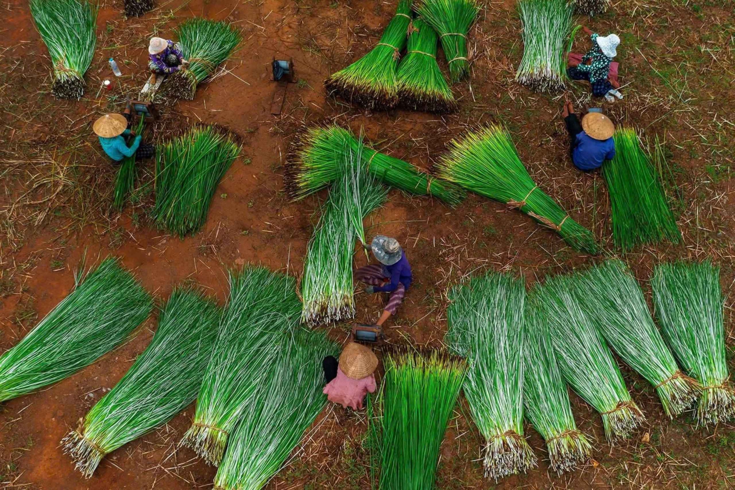 Scopri la pianta Guot, nota per il suo colore rosso scuro o marrone naturale, la sua flessibilità e la sua resistenza. Guarda come le piante vengono essiccate al sole, classificate in base alle dimensioni e al colore e poi intrecciate in vari prodotti, tra cui cesti, abiti, tavoli, sedie, cornici per foto, vasi da fiori e statuine di animali.