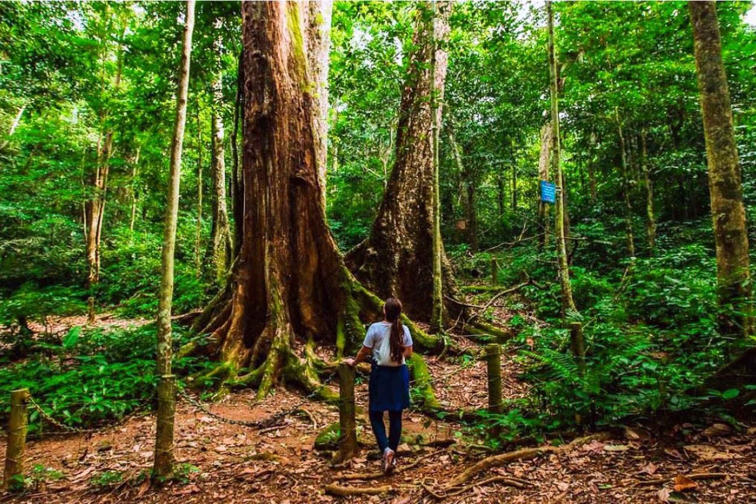 14h00 - 14h40: Arrivato al Parco Nazionale di Cuc Phuong, visiterai il centro di recupero dei primati in via di estinzione. Il centro per primati è stato fondato nel 1993 con l'aiuto della Società Zoologica di Francoforte ed è cresciuto fino a ospitare 100 animali in 30 gabbie, 4 case, due recinti semi-selvatici, poi andrai al centro del parco, lungo la strada visiterai la grotta dell'Uomo Primitivo (risalente a oltre 7000 anni fa), dopodiché inizierai un lungo trekking attraverso la foresta per conoscere le diverse specie floreali e faunistiche del parco. Farai anche una sosta per visitare un vecchio albero.