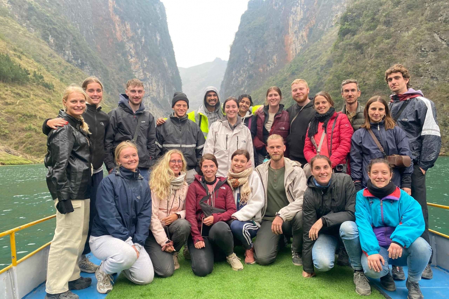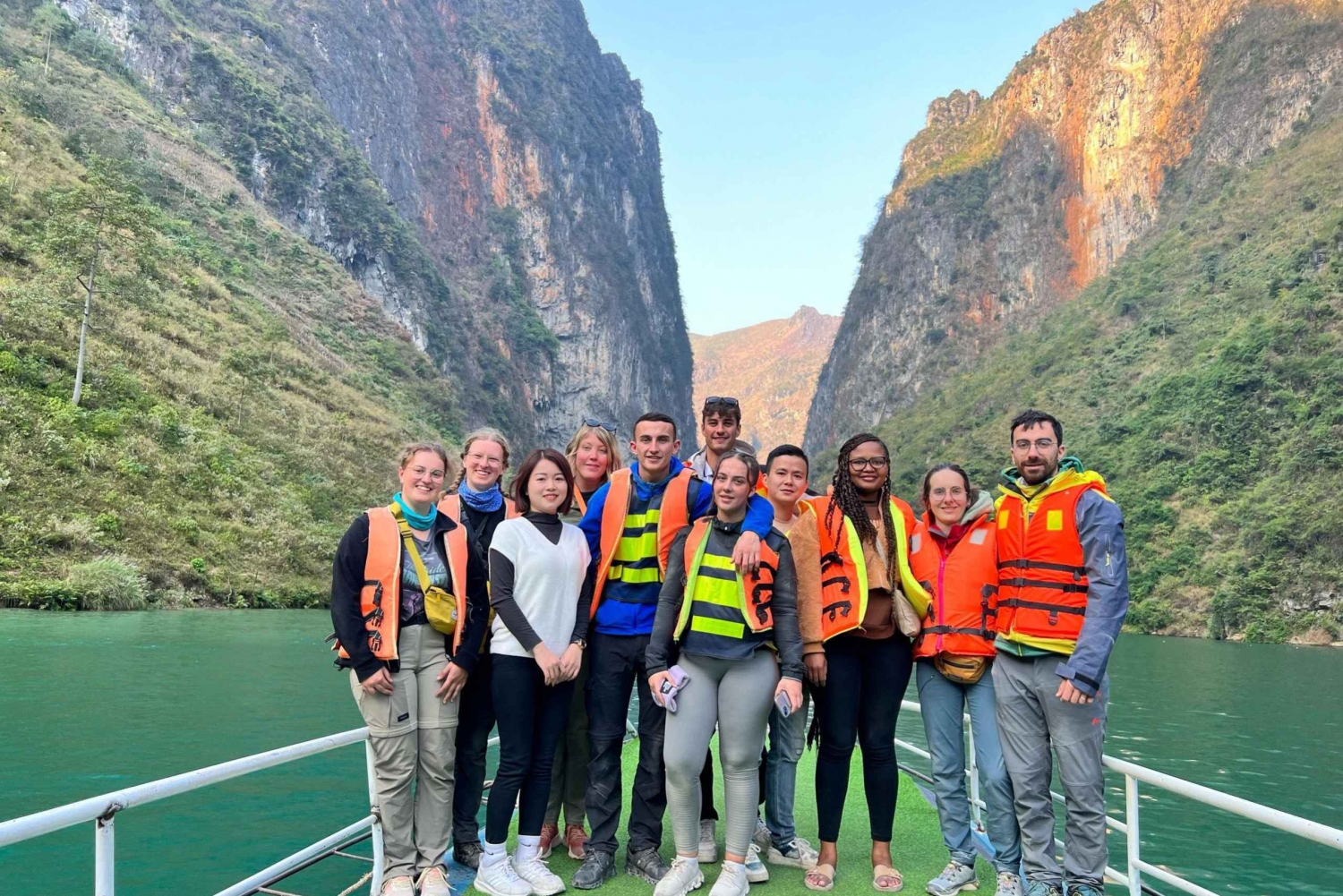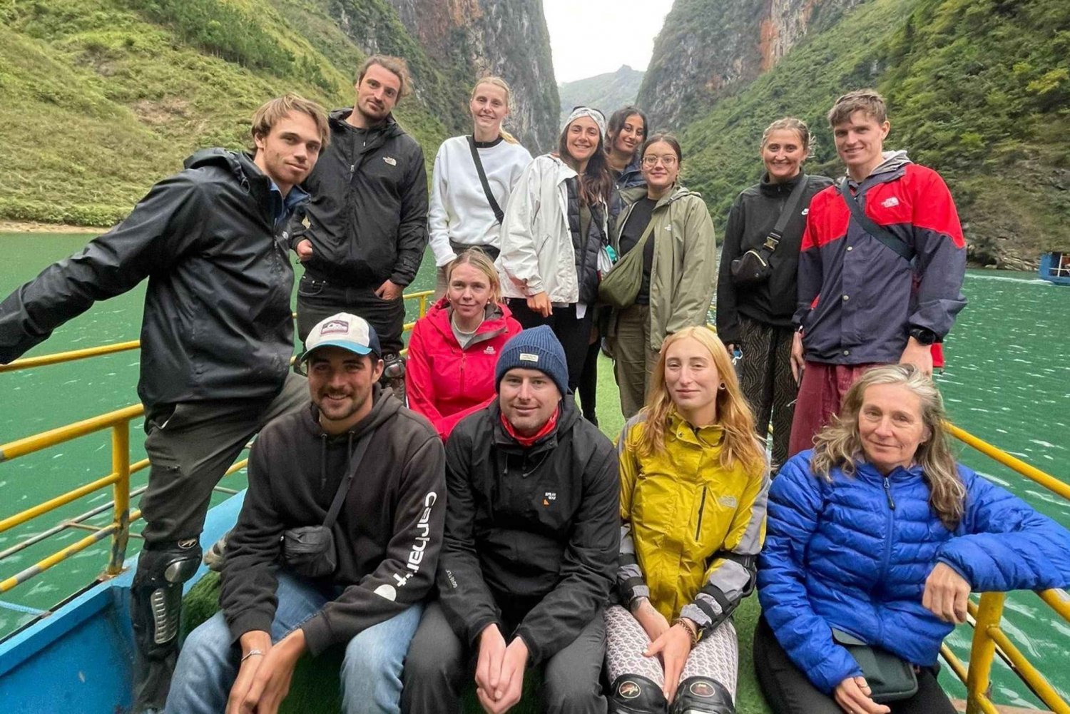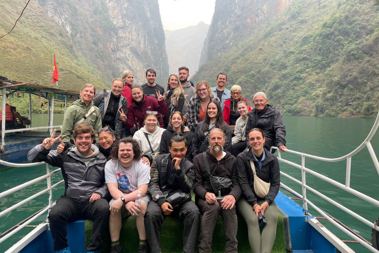 午前8時にホステルで朝食を召し上がり、旅の準備を整えます。午前8時30分にツアーガイドと合流し、ハザンからの美しい曲がりくねった峠道、美しいハザンループを制覇する旅を開始いたします。タイアンに向かって登ると、峠の下には透き通った青い川が流れる素晴らしい景色が広がります。さらに奥へと進み、タイアン峠を越えると、タイアン村の小さな小川沿いの村で昼食を召し上がります。昼食後、ベトナムでも珍しい美しさを誇るドゥオン・トゥオン渓谷へと向かいます。道沿いにそびえ立つ山々とトウモロコシ畑に囲まれて運転いたします。午後にはズーギアに到着し、1日の観光の後、妖精の滝でリラックスいたします。夜は、ホームステイ先でベトナム料理のディナーをお楽しみいただき、カラオケを歌い、ハッピーウォーターを飲みながら、皆様と一緒に楽しいひとときをお過ごしください。