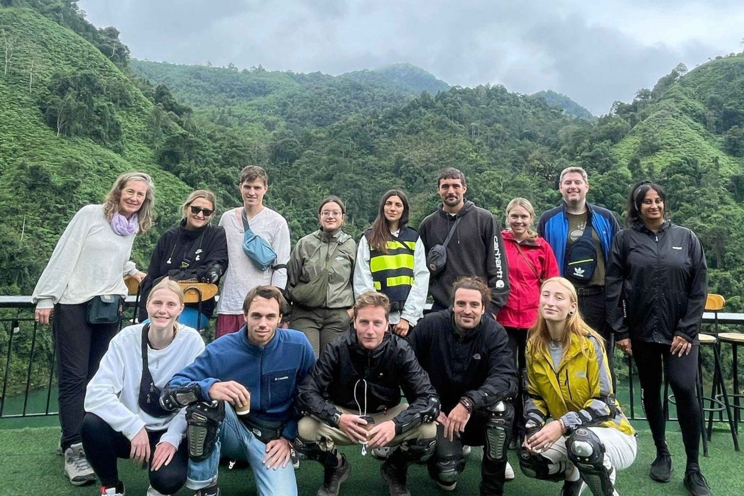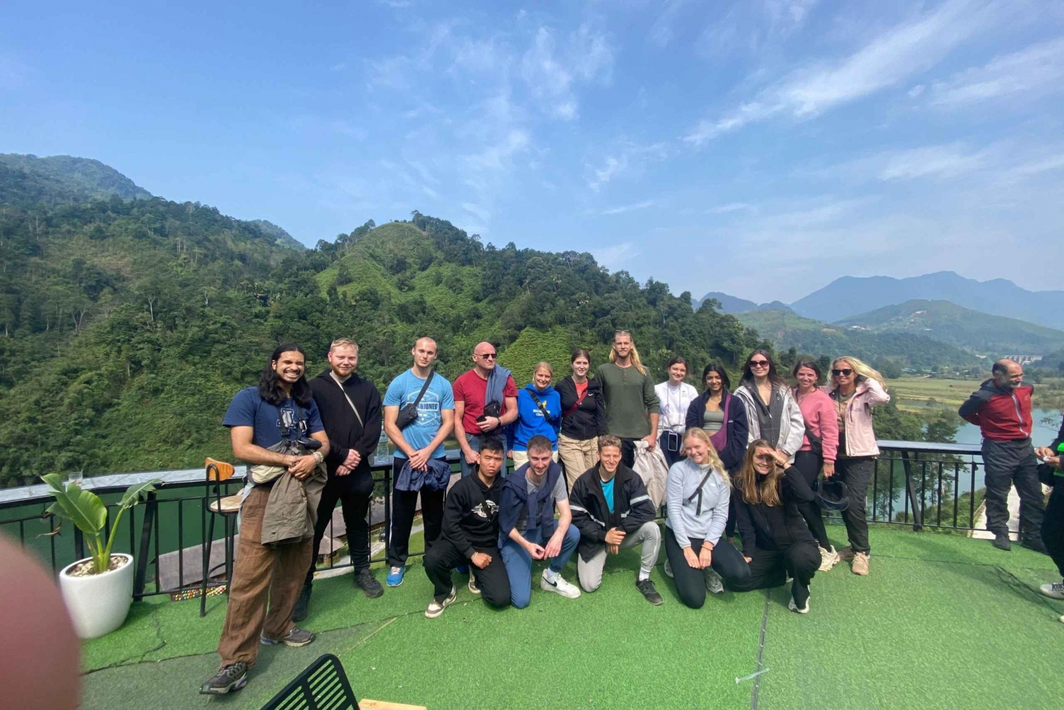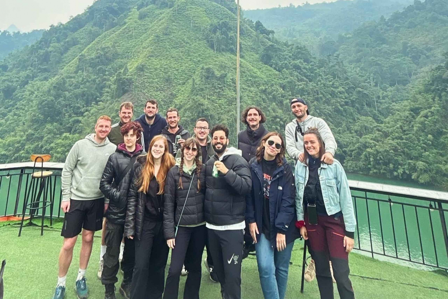 朝食後、地元のホームステイに別れを告げます。まず、ンガムラ村と山々が広がる谷を訪れ、非常に壮大な景色をお楽しみいただけます。ゴックロング村に到着したら、とても青い小川でラフティングを楽しみ、マウドゥエ村でラフティングを終え、昼食を召し上がります。昼食後、雄大な山々を越え、ベトナムで最も美しい峠の1つであるマピーレン峠に到着いたします。上空から見ると、ノークエ川はまるで空から伸びるきらめく緑の糸のようです。北東部の山々と広大な森に囲まれた岩山のそばを流れるノークエ川の時代を超えた美しさをお楽しみください。夕方にドンバンに到着し、地元の夕食を楽しみ、雄大な景色を眺めながら長い一日を終えます。