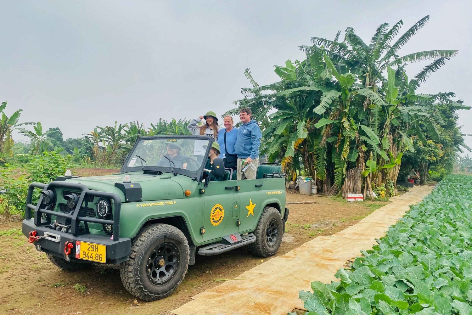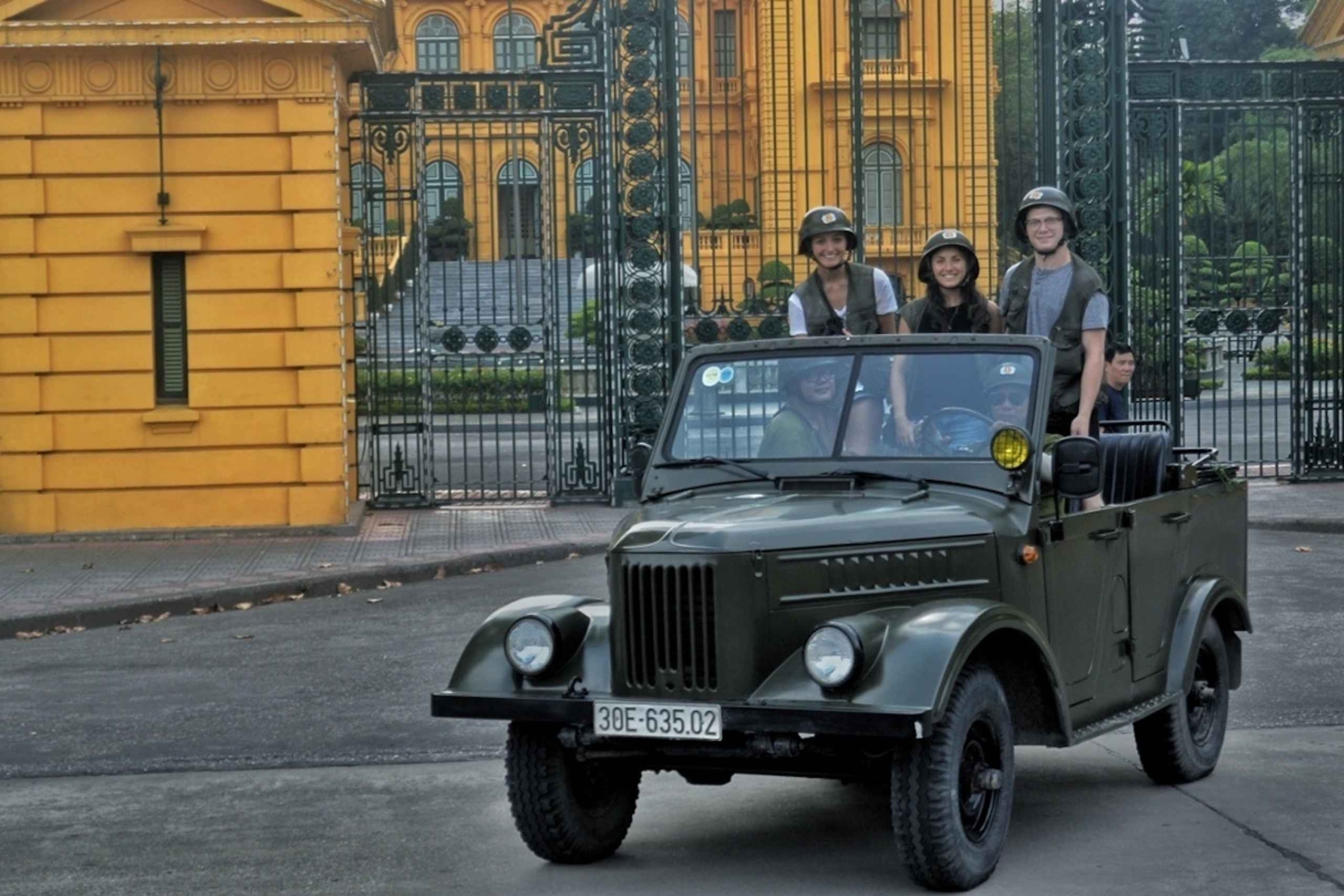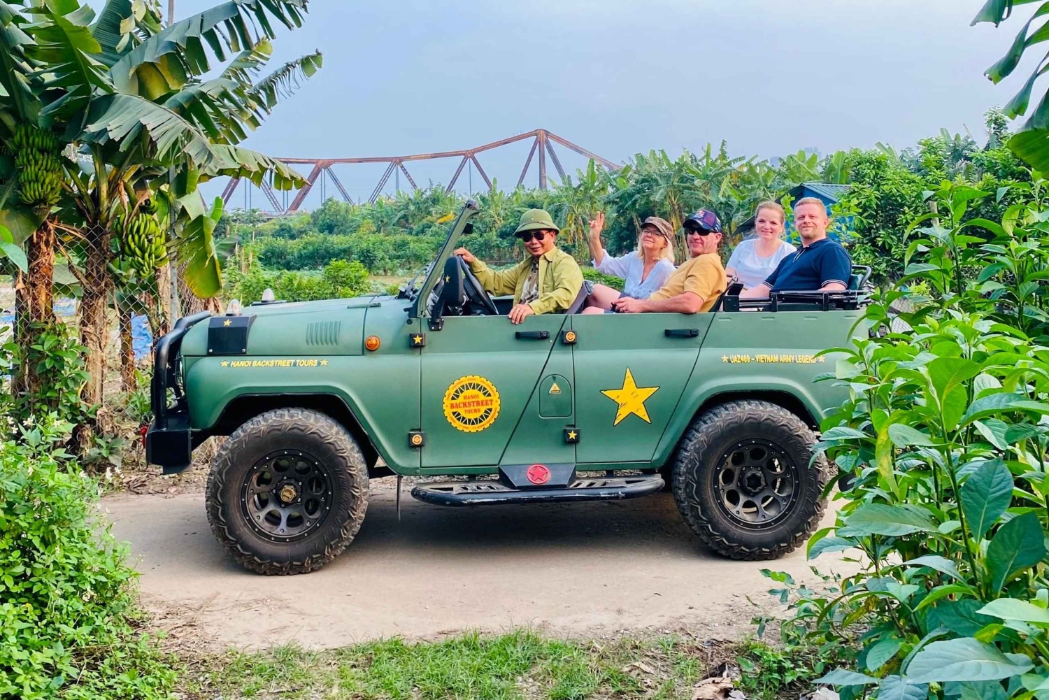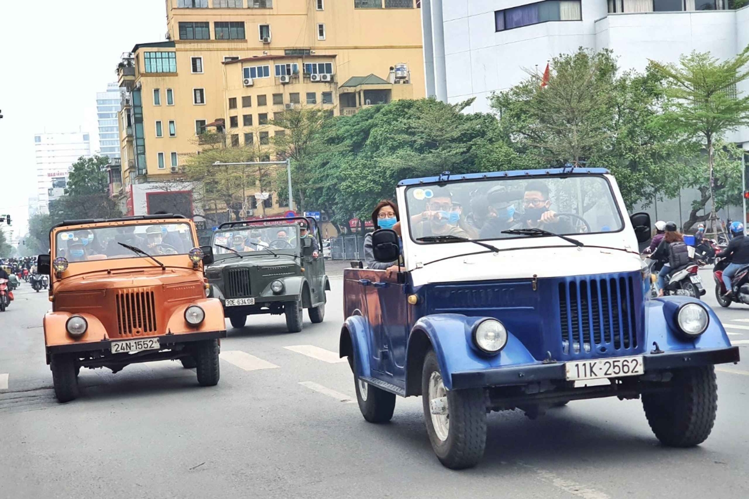 ハノイの食、文化、観光、そして楽しみをベトナム軍用ジープで体験してください。