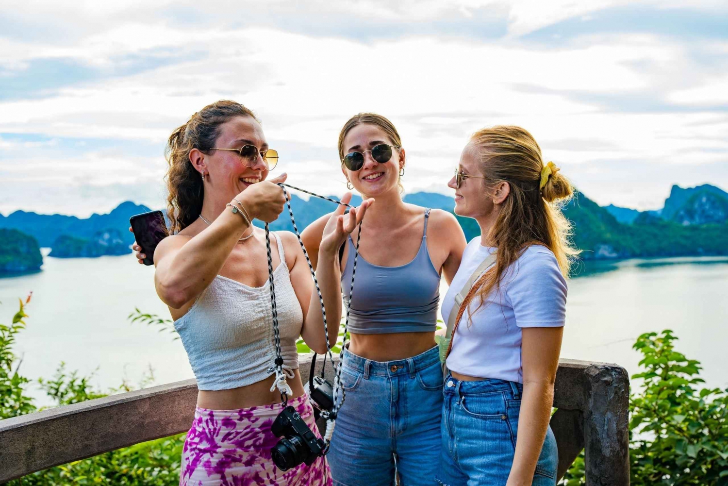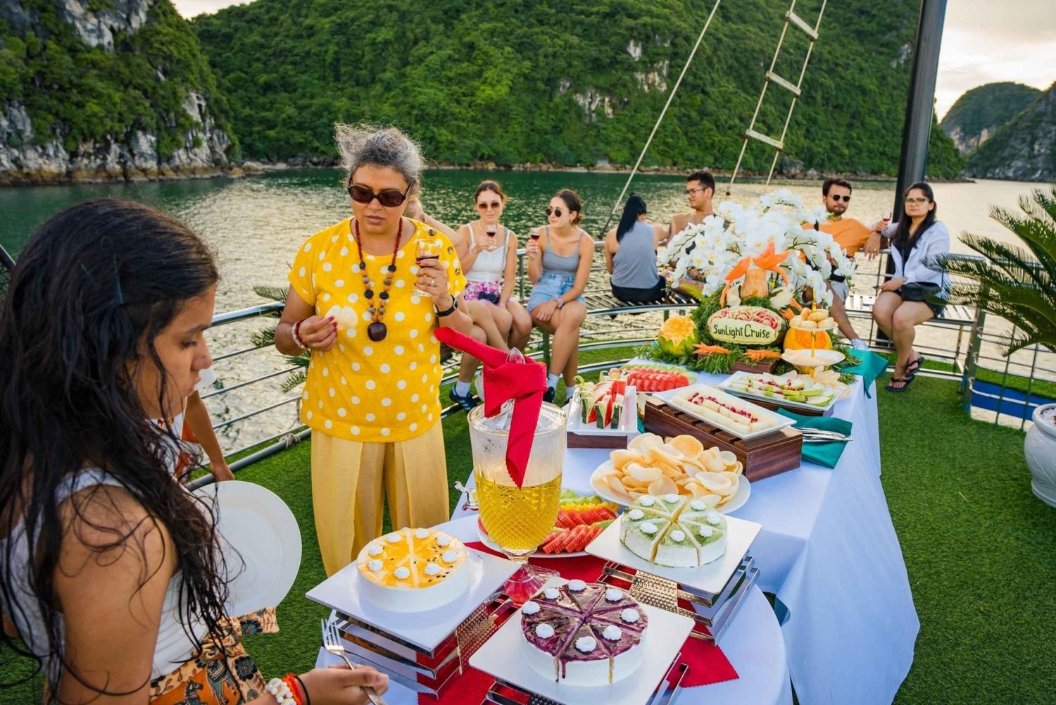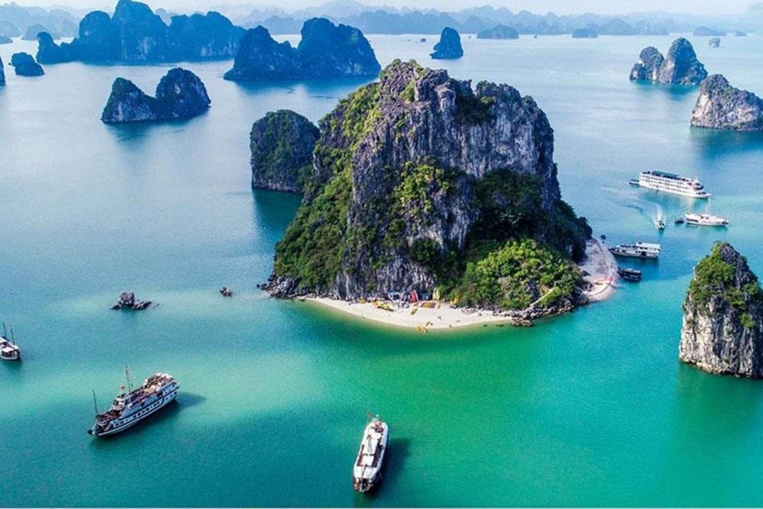 デラックス6時間クルーズでハロン湾をご体験ください!息をのむような景色、グルメなお食事、豪華な送迎付きのオールインワンの旅程をお楽しみください。忘れられない一日のために今すぐご予約ください!