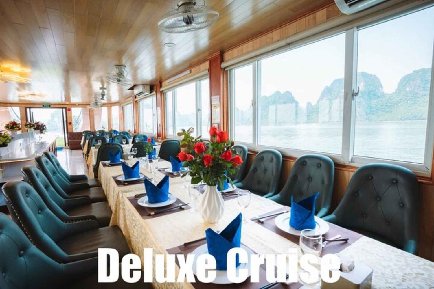 ハロン湾の魅惑的な世界へ逃避し、冒険、リラクゼーション、本物のベトナム文化を融合させたデラックスデイクルーズをお楽しみください。オールインワン」の旅程は、ハノイの喧騒から逃れ、忘れられない思い出を求める旅行者に最適です。