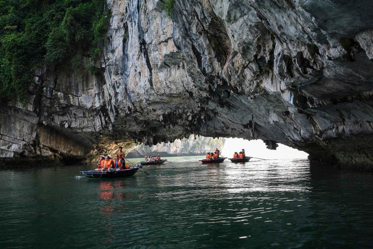2 日目: ハロン湾 1 日ツアー、スンソット洞窟、ティトップ島、ルオン洞窟カヤック