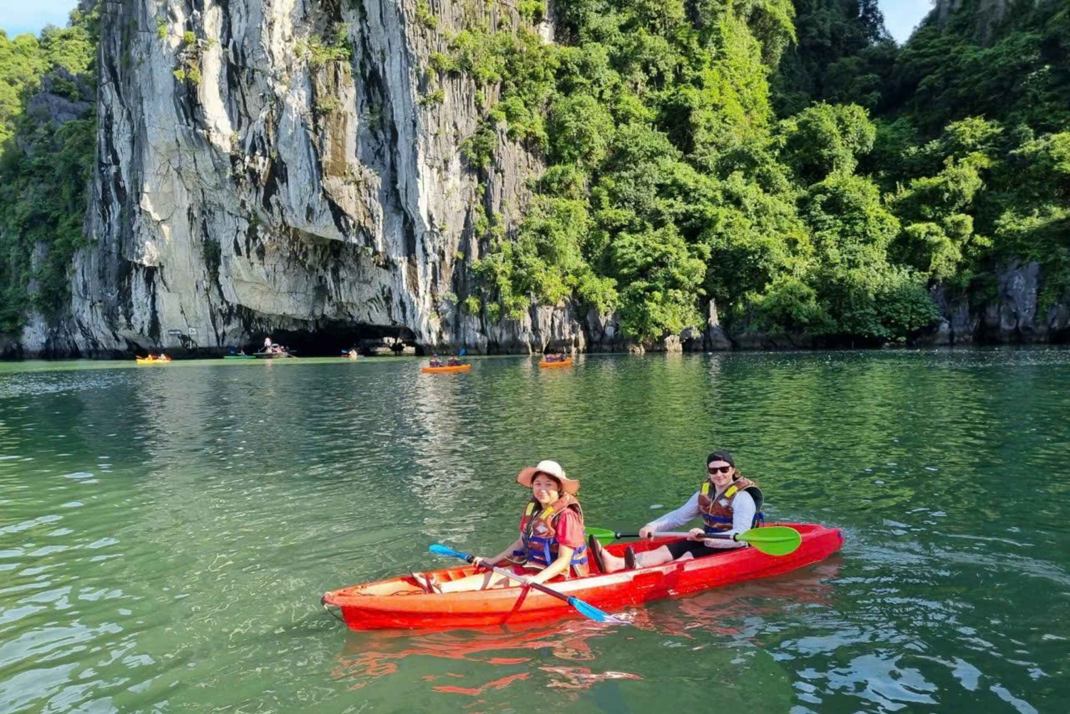 1日目:ハロン湾クルーズ – ガイド付きスン・ソット洞窟、ティトップ島、ルオン洞窟へのカヤック、送迎、昼食