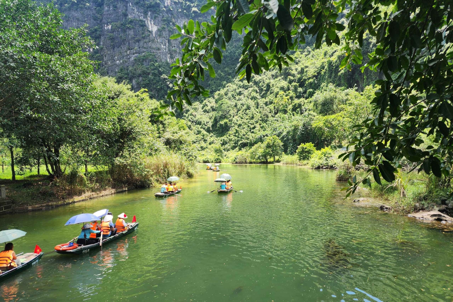 ✓ ユネスコ世界遺産に登録されているチャンアンの静かな水路を木製ボートでクルージングし、映画『キングコング スカルアイランド』に登場する洞窟や緑豊かな石灰岩の山々を滑空します。