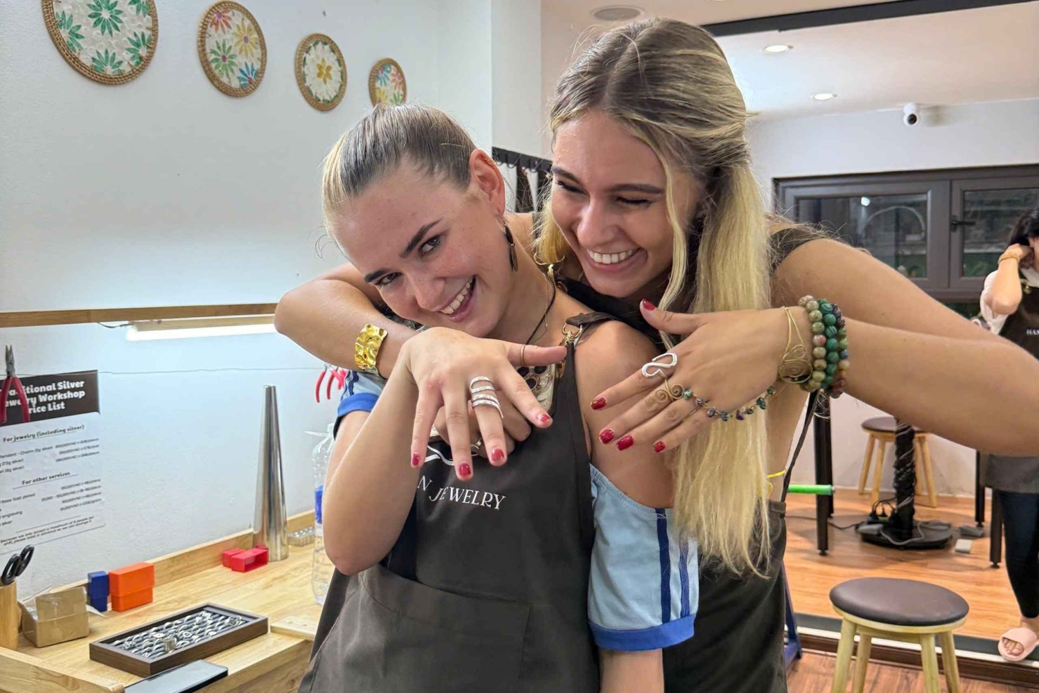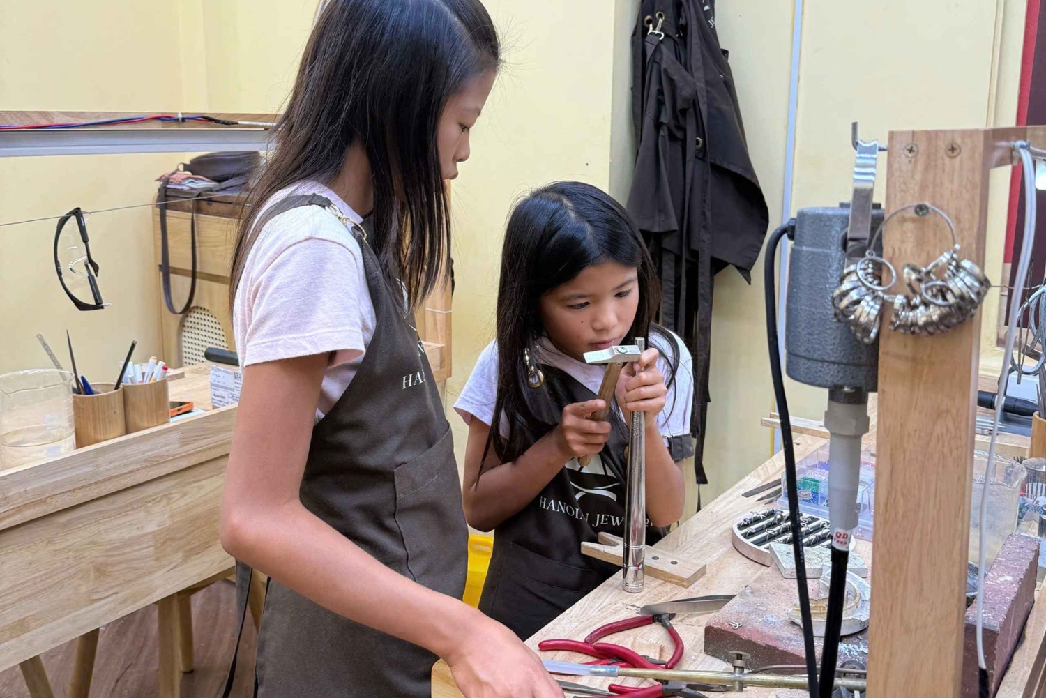 ベトナムの伝統的な銀細工ワークショップで、自分だけのオリジナル銀細工を作りましょう。カット、曲げ、ハンマー、磨きなどの必須テクニックを学びます。