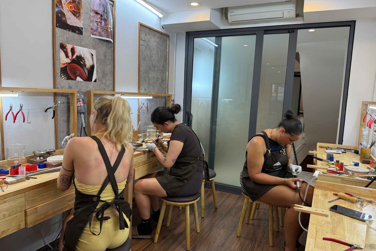 銀の原石が見事なアクセサリーに生まれ変わる魔法を体験してください。地元の職人の指導のもと、カット、曲げ、ハンマー、はんだ付け、研磨など、必要不可欠なテクニックを学び、練習します。自分の手で作品を形作る満足感を味わってください。