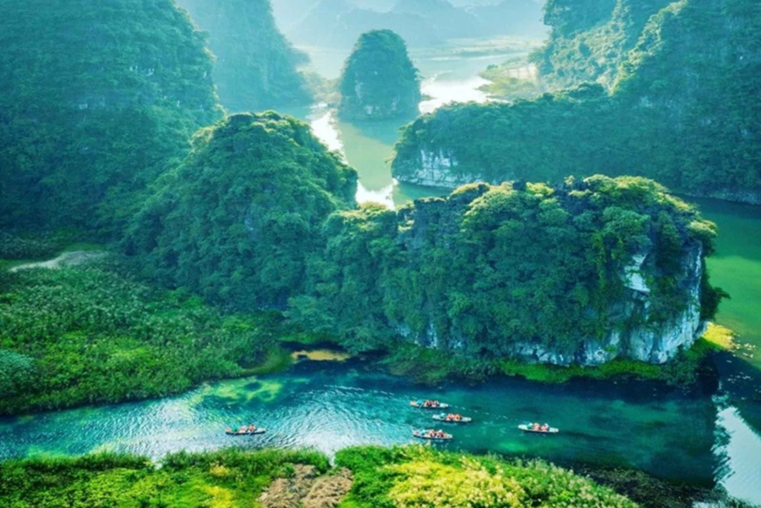 ハノイ発2日間のニンビンツアーで最高の体験を。ボートツアー、サイクリング、絶景ポイントをお楽しみください。ホアルー、タムコック、トランアン、ムア洞窟、バイディン寺を訪問し、ビュッフェランチをお楽しみください。