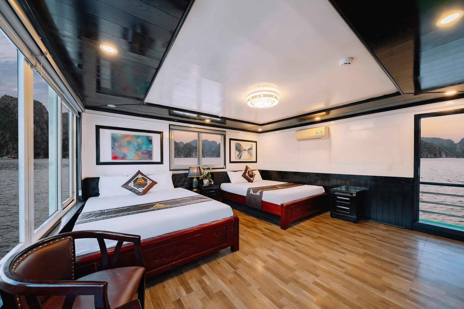Keer terug naar Lan Hạ Bay, waar je kunt kajakken rond kalksteeneilanden, zwemmen op privé verlaten stranden, zonnebaden op de boot en meer.