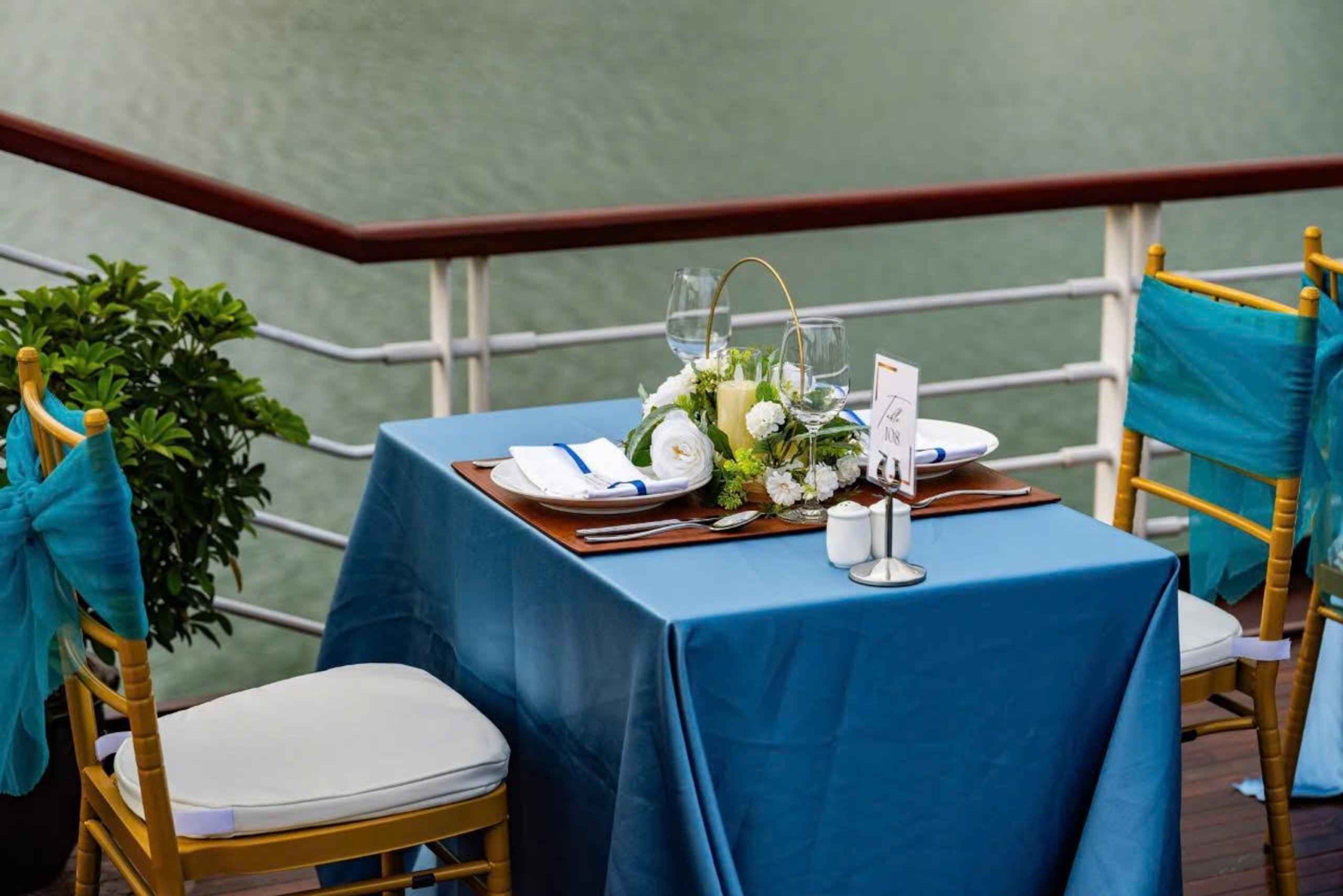 5 Star Amanda Luxury Cruise vaart verder langs verbazingwekkende karsttorens. Thee, koffie en een licht ontbijt worden geserveerd met frisse lucht en een rustige omgeving.