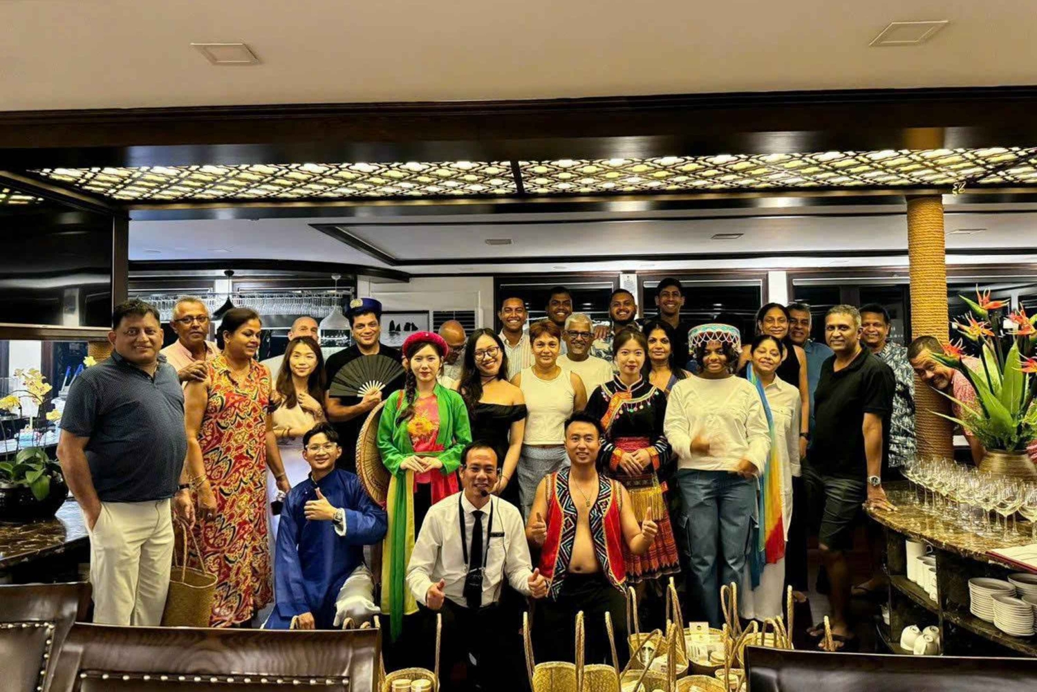 Terwijl de goed bereide lunch wordt geserveerd, vaart onze cruise langzaam door smaragdgroen water en duizenden Karstbergen richting de haven.