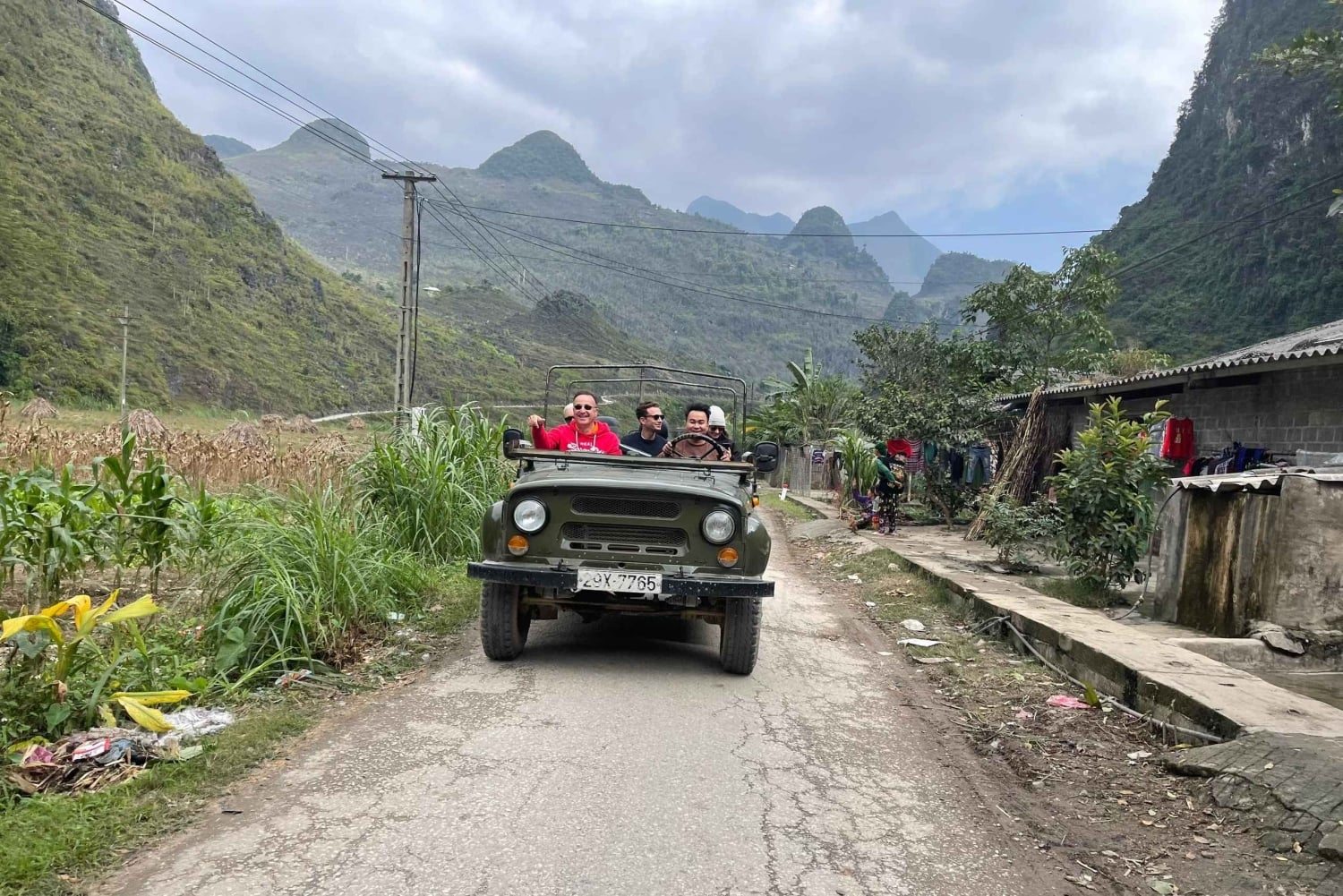 Het Hanoi Jeep Tour Team haalt je op van je hotel in de oude wijk van Hanoi. Onze gids en chauffeur begroeten je in de lobby van je hotel of op ons trefpunt voor een veiligheidsbriefing, waarna we aan ons avontuur beginnen.