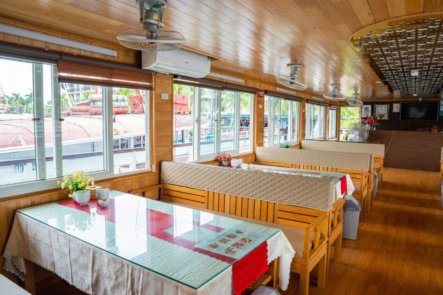 - Geniet van 6 uur varen door de verbazingwekkende Halong Bay