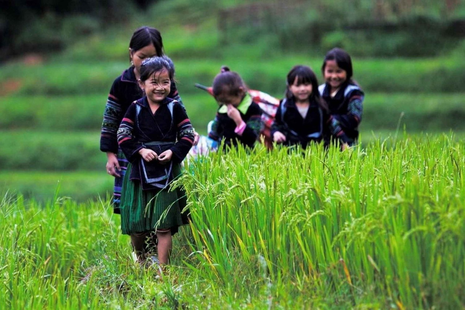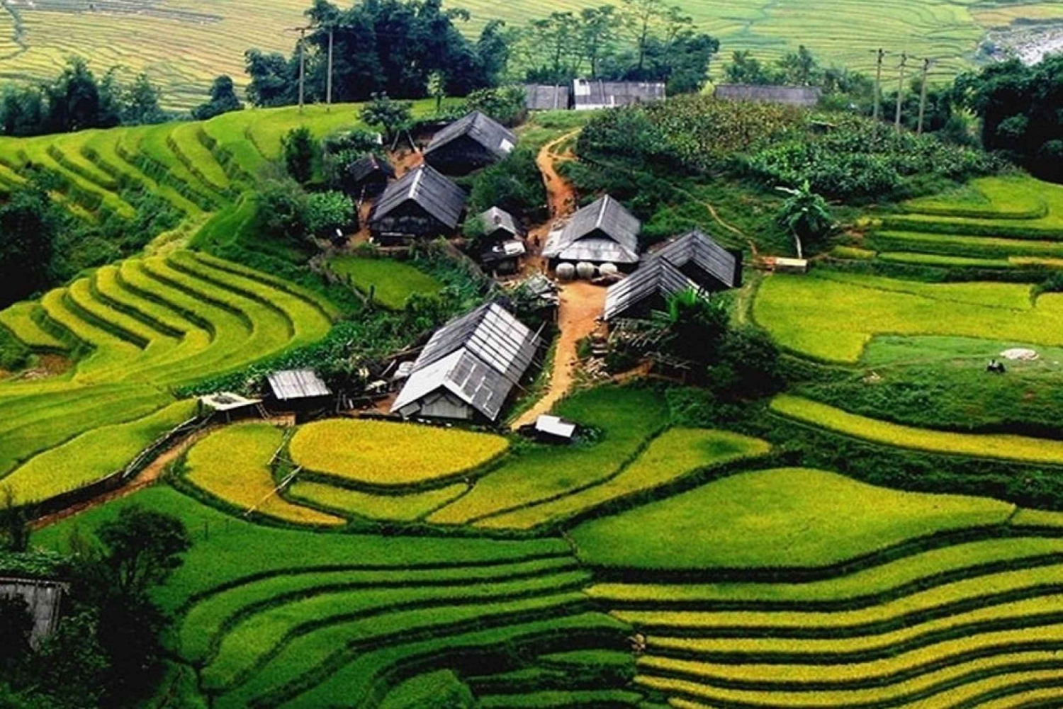 ✓ 8.30–8.45: Gå gjennom risterrassene og langs Muong Hoa Stream til Black Hmong Village of Lao Chai for å se det spektakulære landskapet i Hoang Lien Son-fjellet.