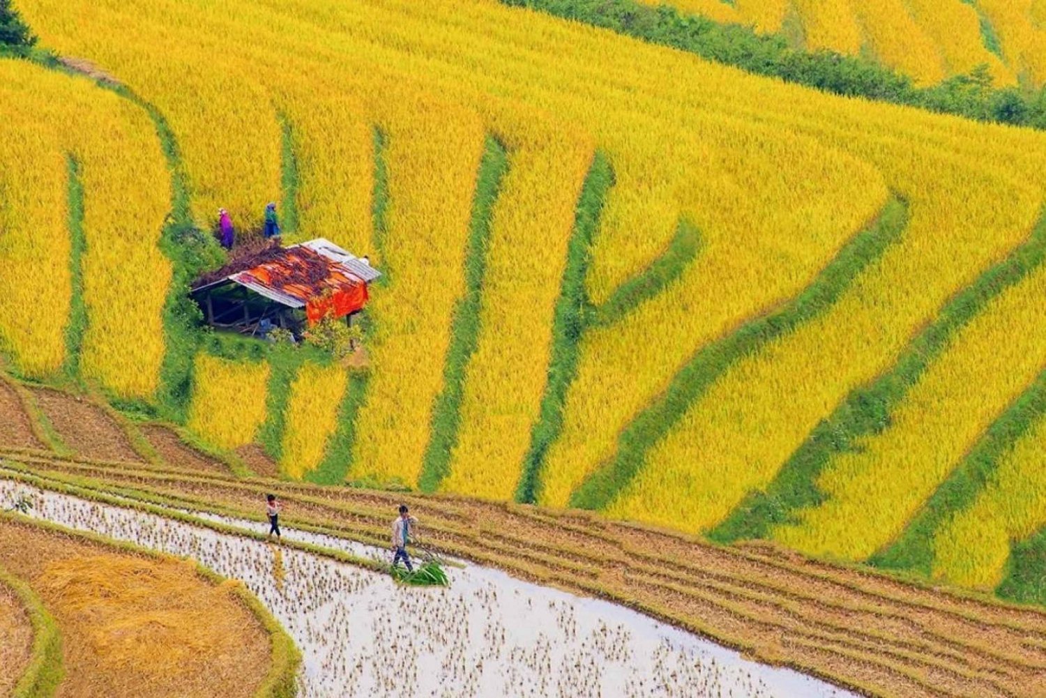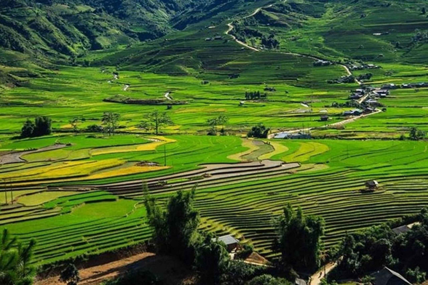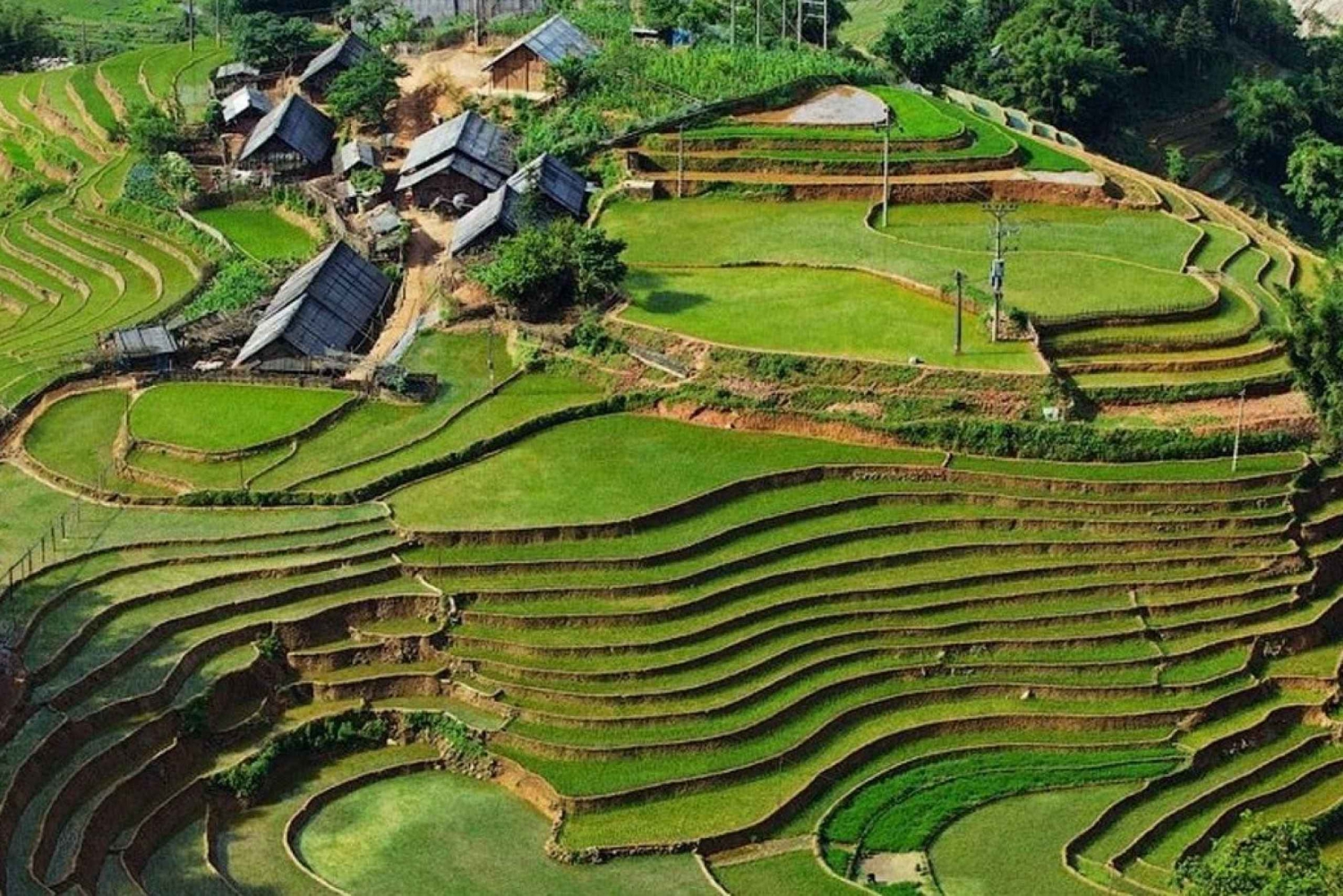 ✓ 8.45: Fortsett å gå til rismarkene hvor du har en fin fotosession av de fantastiske landskapene rundt, en fottur gjennom bambusskogen, en stopp for å få en panoramautsikt over Giang Ta Chai landsby – hjemstedet til det røde Dzao-folket.