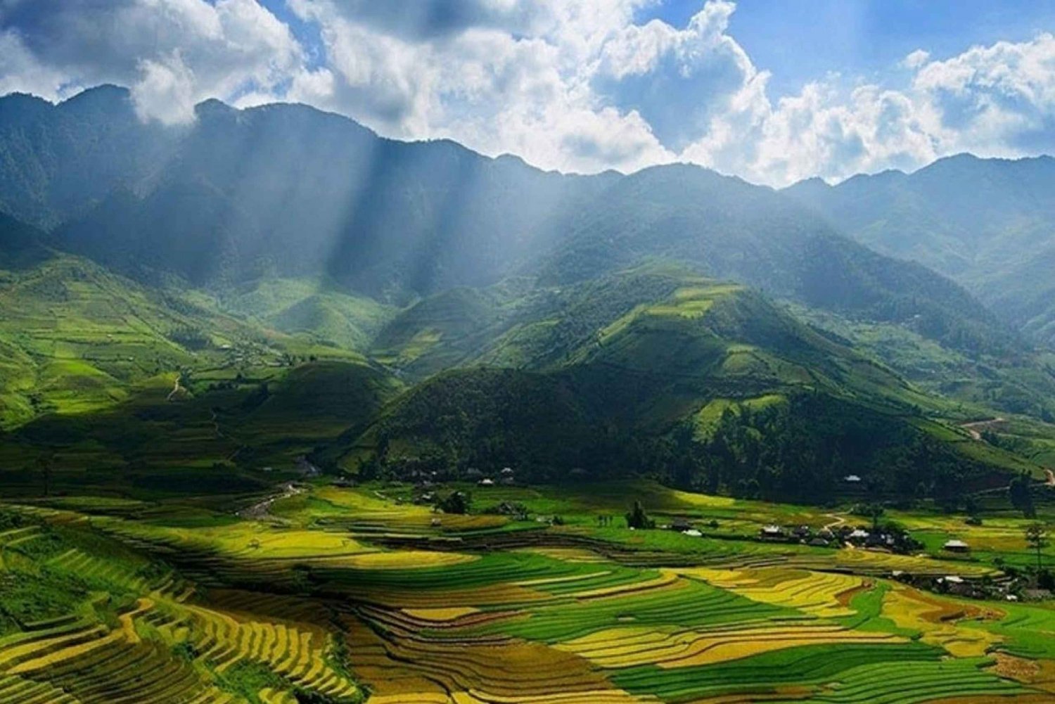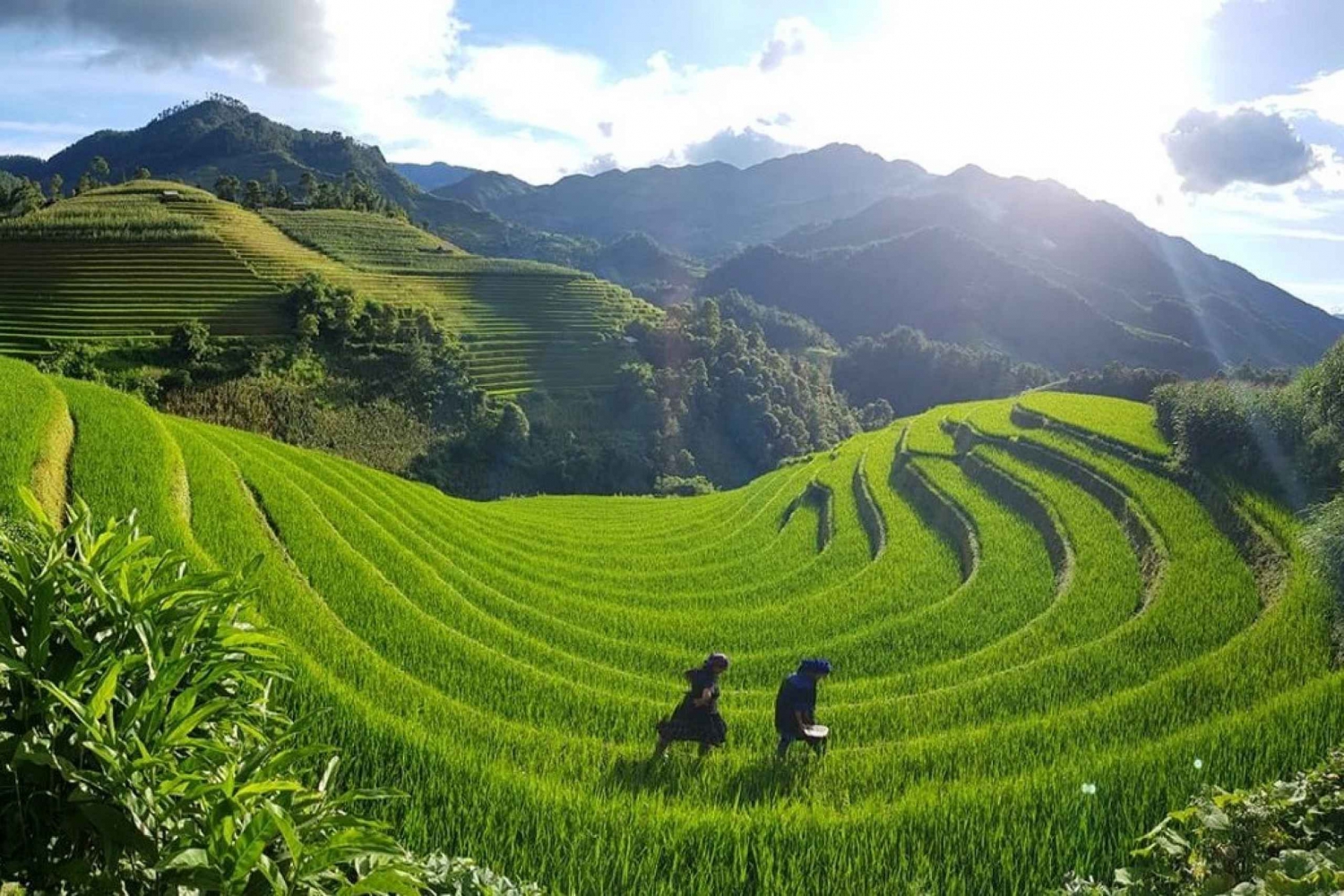 ✓ 13:00: Ankomst til Sapa med fargerike tradisjonelle kostymer fra H'mong, Dzao og Tay-etniske folk. Guiden henter deg for å spise lunsj med lokale vietnamesiske retter.
