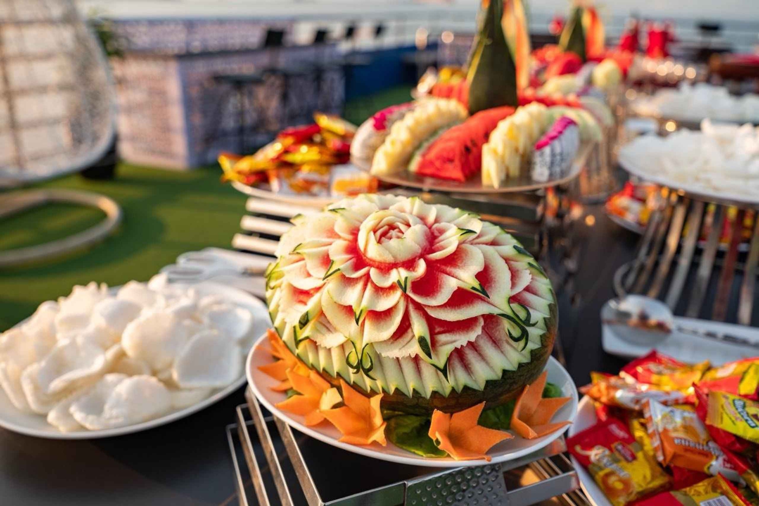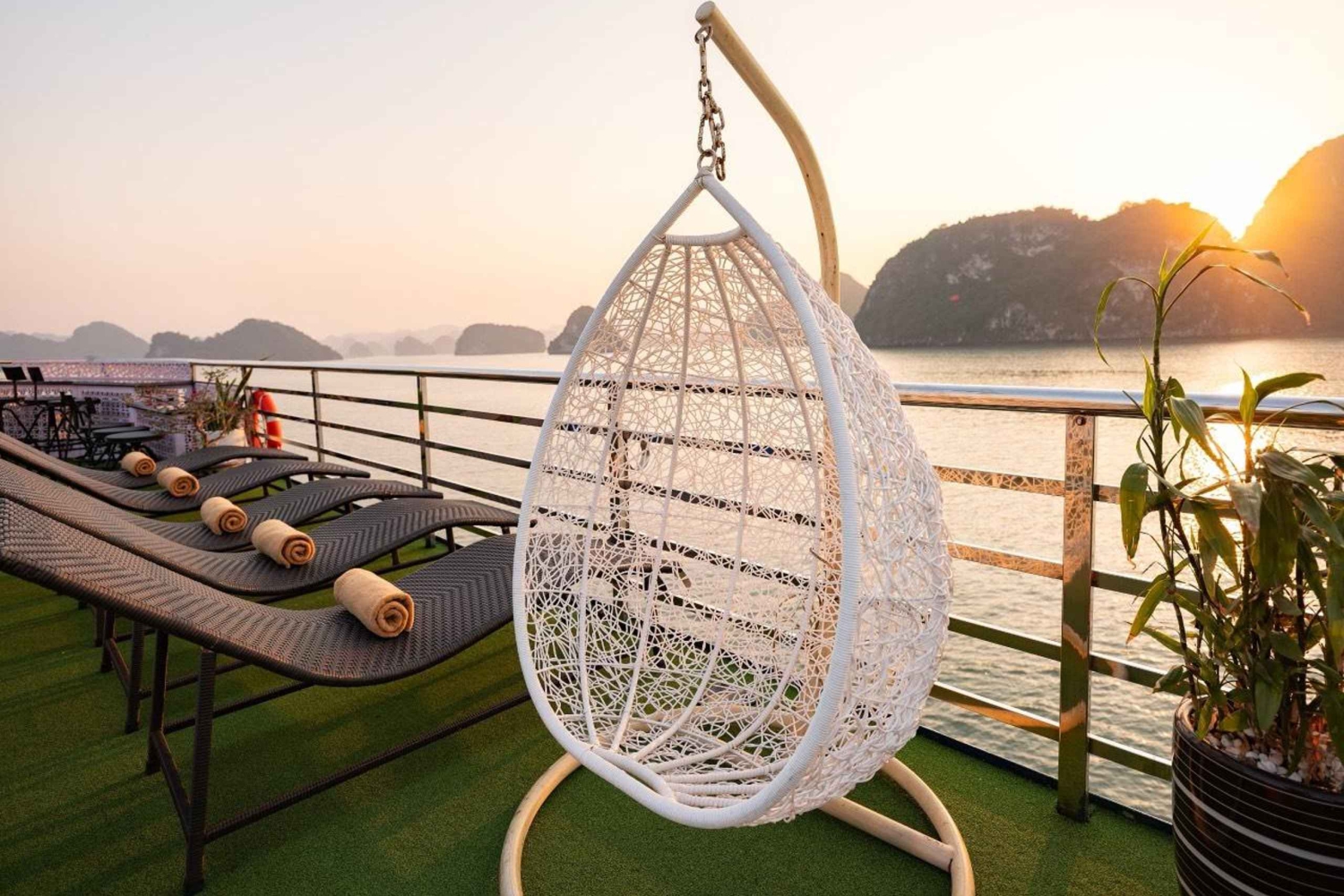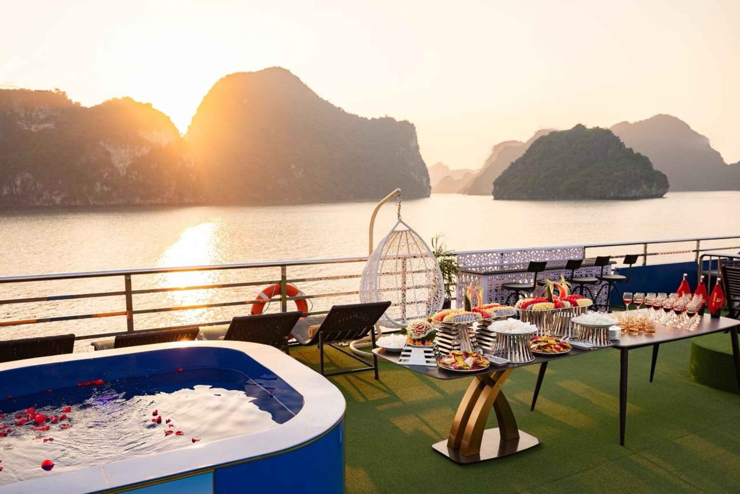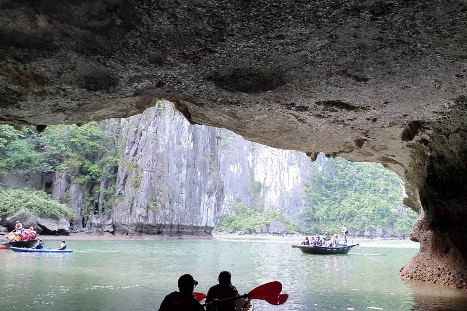 Nyt en flott tid på cruiset mens du utforsker Ha Long-bukten, besøk Sung Sot-hulen, som er dannet av vakre stalaktitter, se det vakre landskapet i Ha Long fra Titop Island, padle kajakk i Luon-hulen