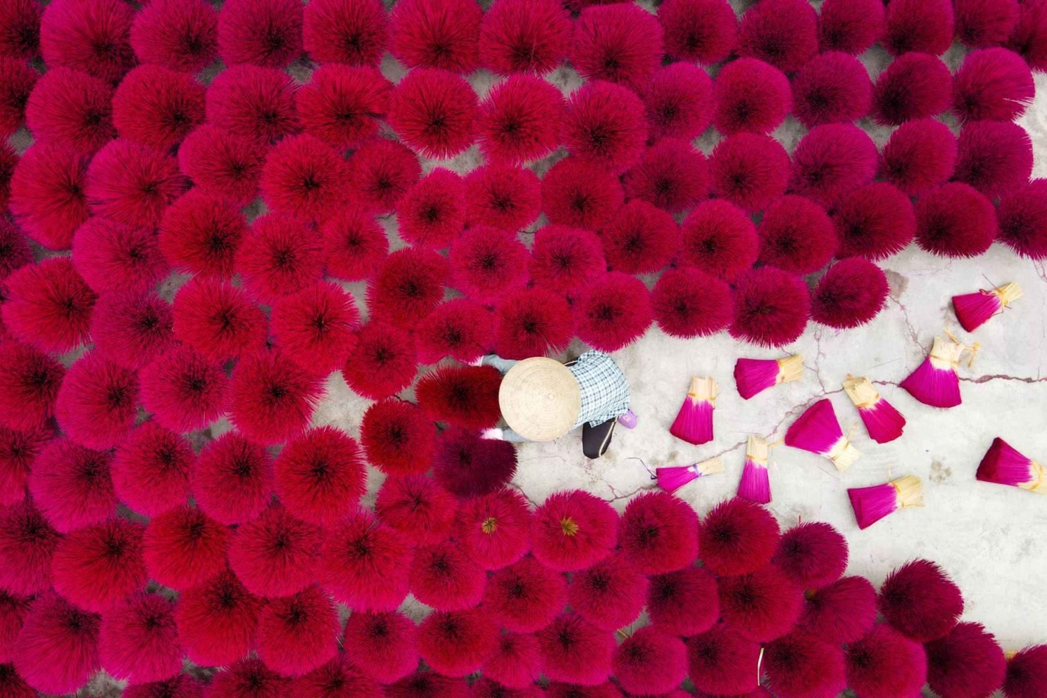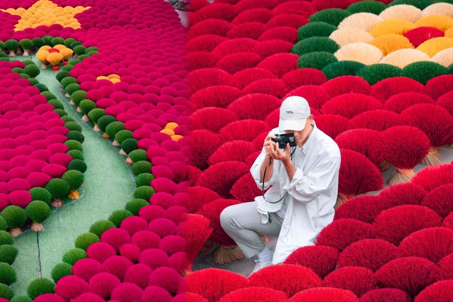 Fordyp deg: Bli vitne til den fascinerende kunsten å lage røkelse mens dyktige håndverkere demonstrerer hvert trinn, fra hakking av bambus til farging av pinnene og fremstilling av den aromatiske røkelsespastaen.
