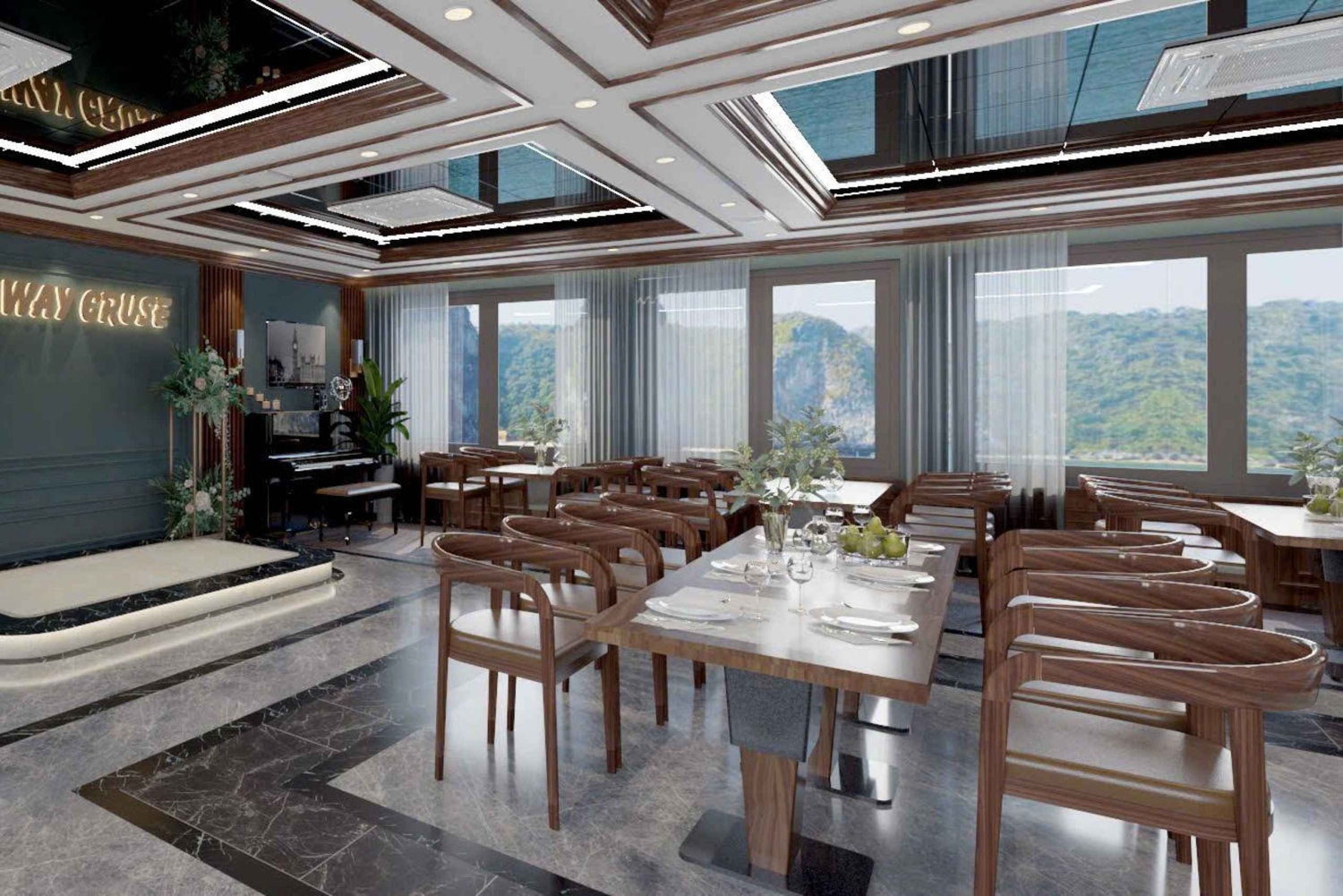 11:30-12:00 Ankomst til Tuan Chau internasjonale cruisehavn for å gjennomføre innsjekkingsprosedyren. 12:00-14:00 Ombordstigning på Le Journey Cruise, velkomstdrink og lunsj i cruiserestauranten. 14:00-17:00 Utforsk Surprising Cave og Titop Island med svømming og fotturer.