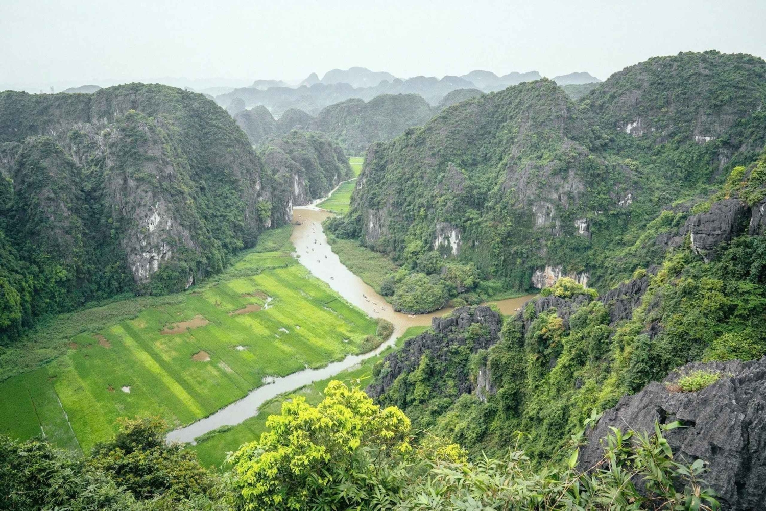 Oppdag Trang An Ecotourism Landscape, som står på UNESCOs verdensarvliste, på en dagstur fra Hanoi. Besøk den gamle hovedstaden Hoa Lu, sykle rundt i landsbyen og klatre opp til toppen av Mua-hulen (valgfritt).