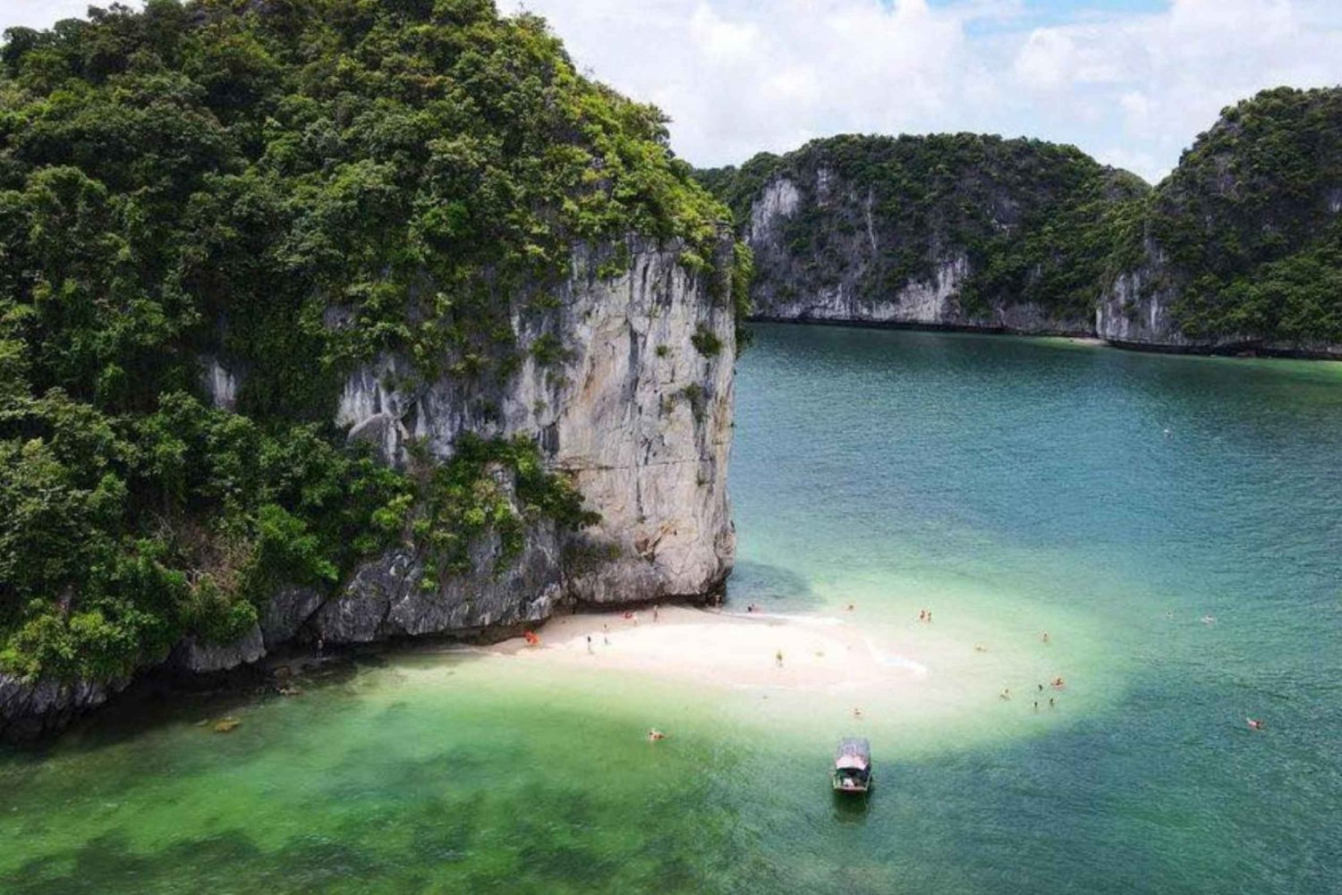 16:30: Postój na plaży Ba Trai Dao, aby popływać i skakać z łodzi. Plaża ta jest odległa, cicha i mniej turystyczna – idealna do odkrywania plaż świątynnych, ukrytych lagun i malowniczych łuków skalnych.