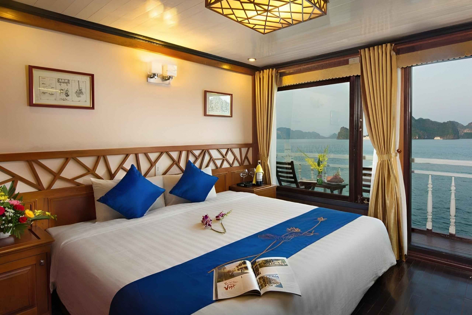 Ze względu na niewielkie rozmiary łódź może pływać nawet w miejscach o płytkiej wodzie, gdzie inne duże statki wycieczkowe nie mają dostępu. Rejs po królewskim pałacu zabierze cenionych klientów do najspokojniejszych miejsc w zatoce Halong, gdzie odkryją zachwycające krajobrazy. Wycieczka na szczyt wyspy Titop, aby podziwiać panoramiczne widoki na legendarną zatokę. Pakiet obejmuje 4 posiłki i wszystkie atrakcje, takie jak kajaki, pływanie, łowienie kałamarnic, karaoke i odkrywanie zaskakującej jaskini.