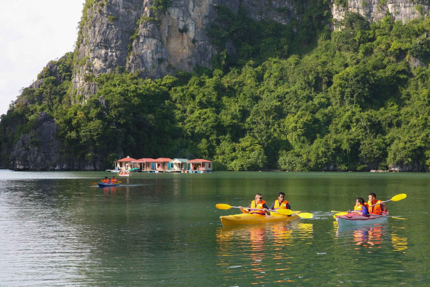Po odbiorze z hotelu w starej dzielnicy Hanoi około godziny 8:00 rano, wyruszamy do zatoki Ha Long i udajemy się do portu Tuan Chau, gdzie przyjazd przewidziany jest na godzinę 12:00. Po dopełnieniu formalności związanych z zameldowaniem, zapraszamy na lunch z owocami morza w formie zestawu menu, podczas którego będziecie mogli podziwiać szmaragdowozielone wody. Podziwiaj tysiące wapiennych wysp, wysepek i formacji skalnych wyłaniających się z wody w ciekawych kształtach. Weź udział w spływie kajakowym i zbliż się do wapiennych klifów. Odkryj spokojną zatokę lub wybierz się na wycieczkę na wyspę Ti Top, aby podziwiać panoramę zatoki Ha Long z szczytu góry. Jeśli pogoda na to pozwoli, popływaj w kuszących wodach.