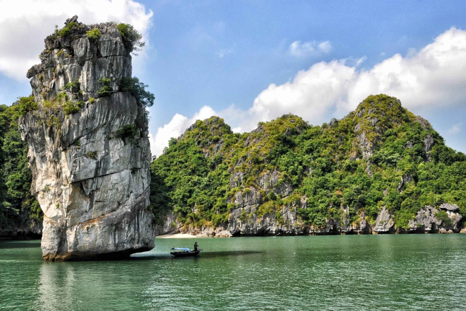 Następnie łódź zabierze Cię na wyspę Titop, gdzie możesz wspiąć się na szczyt wyspy, aby zobaczyć piękno całej zatoki Ha Long. Ze szczytu góry Titop możesz podziwiać panoramiczny widok na zatokę Ha Long z tysiącami wapiennych klifów wynurzających się z czystej, błękitnej wody, naprawdę jak prawdziwa kraina baśni. Następnie możesz popływać w czystej, błękitnej wodzie zatoki.