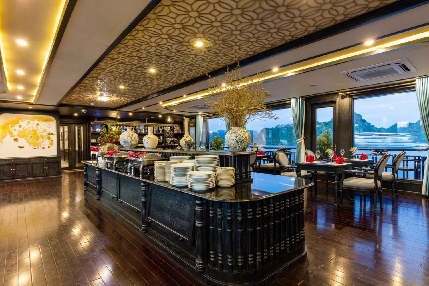 11:30 – 12:00: Przyjazd na nabrzeże Tuan Chau. Stąd transport na pokład statku.