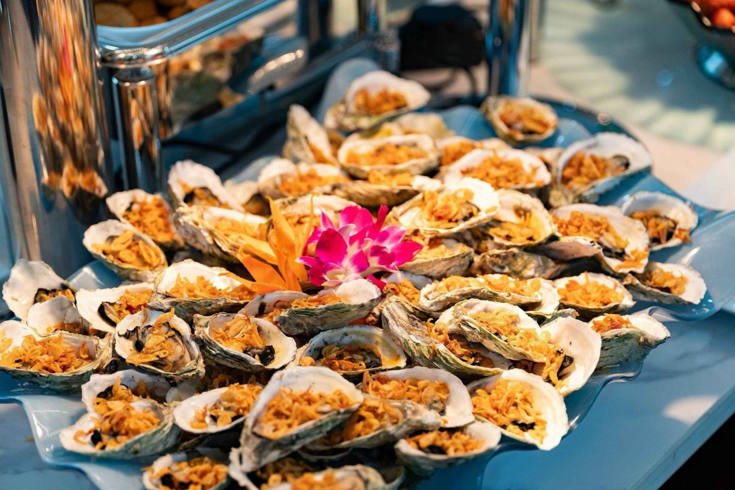 - Lunch w formie bufetu z różnorodnymi daniami kuchni azjatyckiej, zachodniej i owocami morza