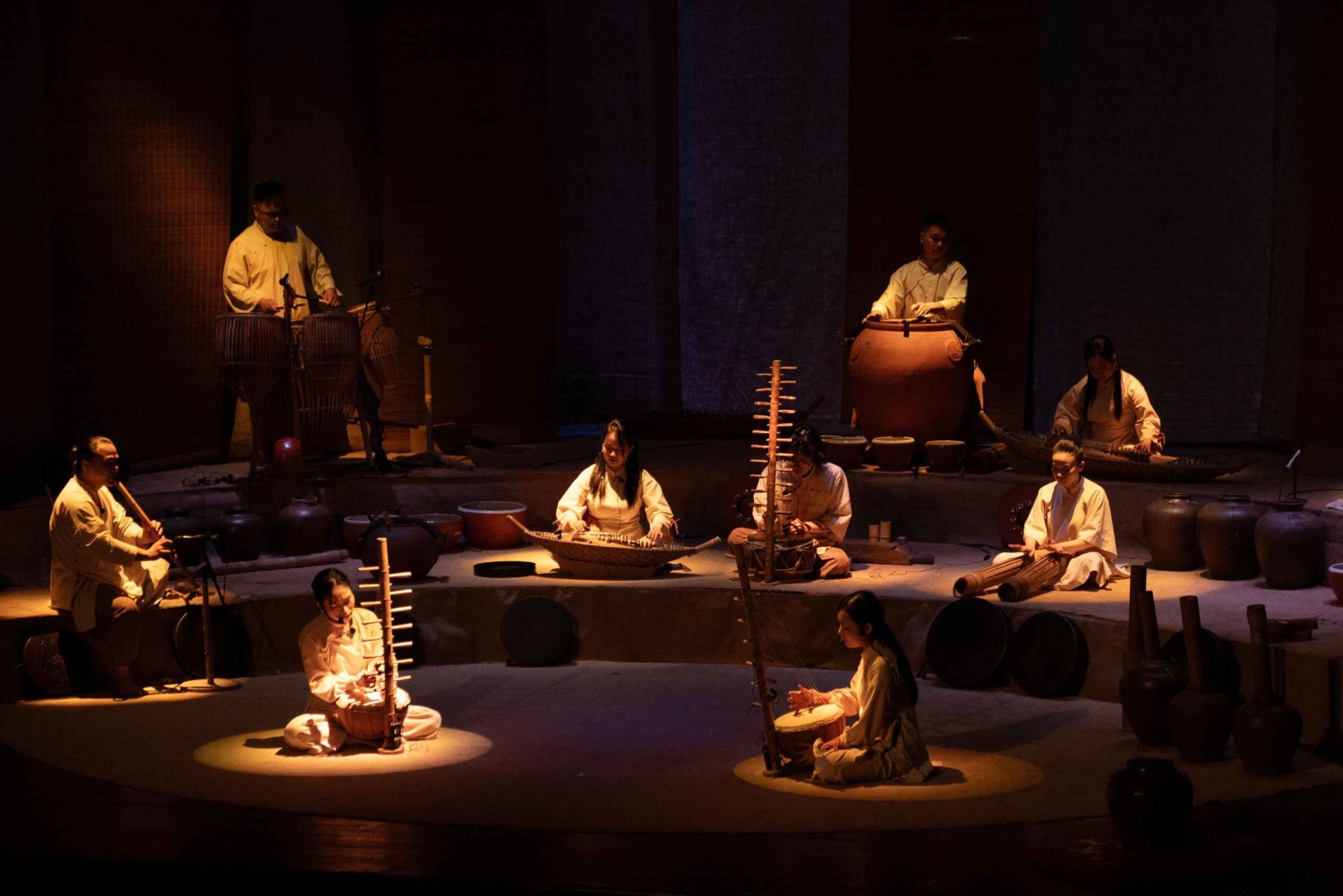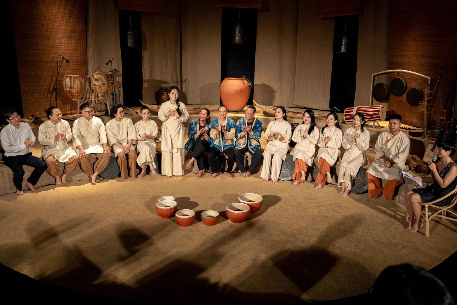 Jeśli odwiedzasz nas w czwartek lub piątek, możesz wzbogacić swoją wycieczkę o GOM Live Show (opcja Bat Trang Vespa Ride: Pottery Village & GOM Live Show), hipnotyzujący występ w pobliżu jeziora Hoan Kiem, który łączy muzykę, opowiadanie historii i instrumenty wykonane z gliny, aby uczcić dziedzictwo ceramiczne Wietnamu.