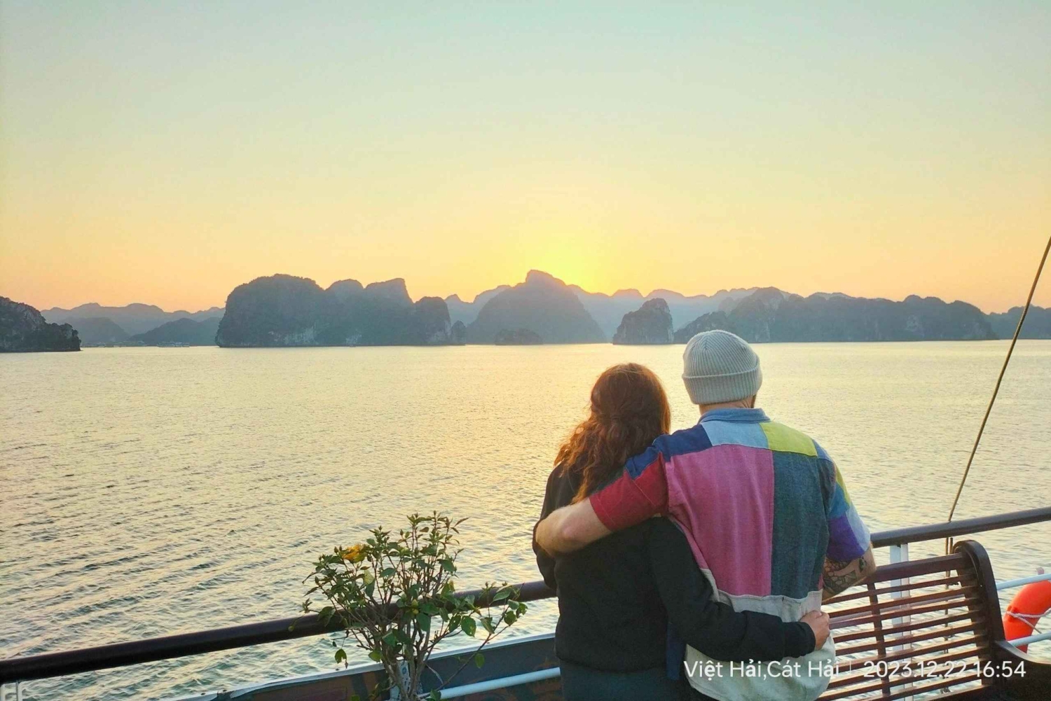 Impreza o zachodzie słońca podczas drogi powrotnej do portu Tuan Chau