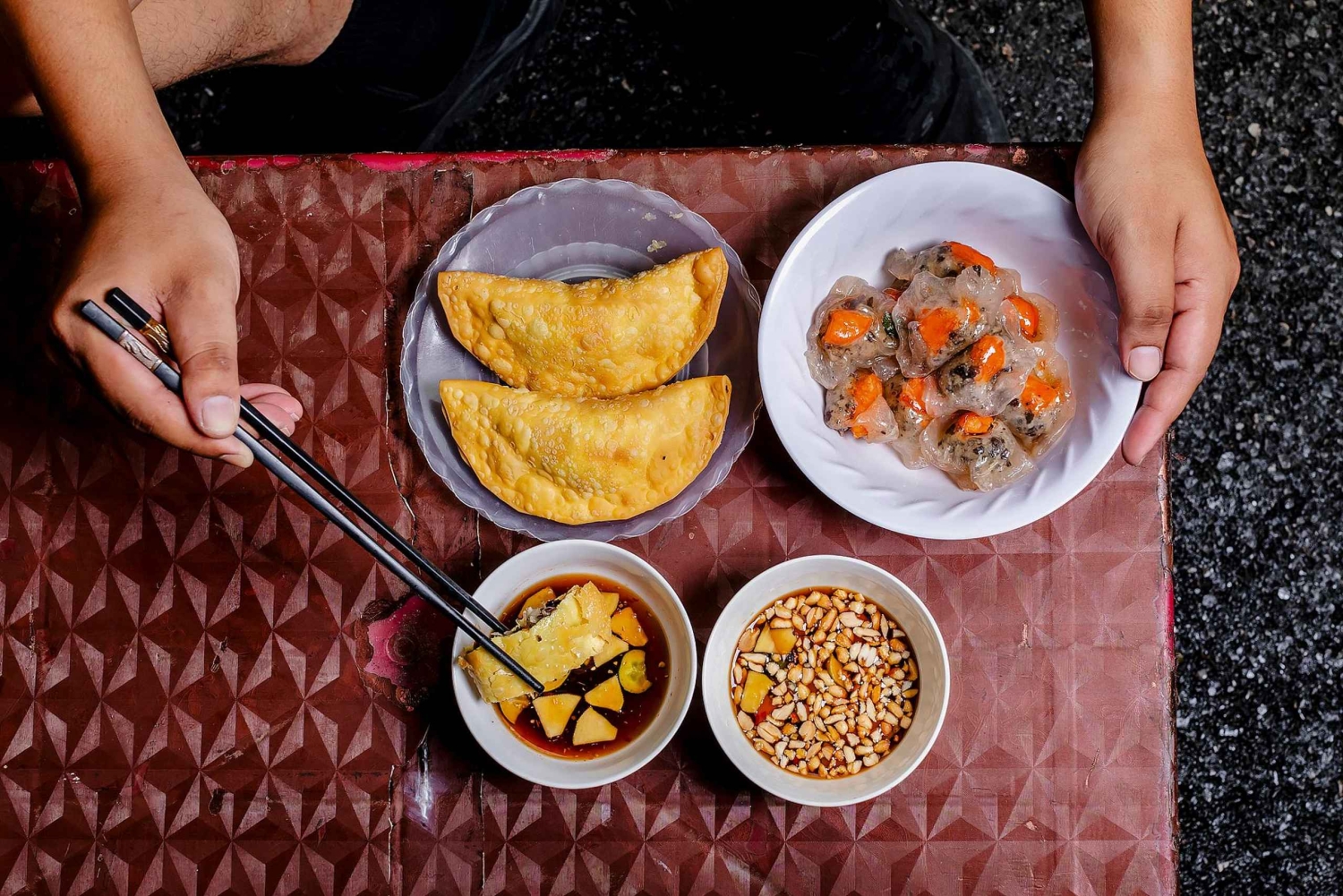 Spotkamy się w historycznej Starówce, gdzie będziemy spacerować między ulicznymi sprzedawcami jedzenia, wieloletnimi restauracjami i rodzinnymi przepisami, które są przekazywane z pokolenia na pokolenie. Będziemy chrupać chrupiące, ręcznie robione bułeczki, przezroczyste pierożki z tapioki i karmelizowany boczek wieprzowy. Nie możemy przegapić hanojskiego klasyka – ryby z kurkumą i koperkiem w stuletnim lokalu, a potem gorącej miski pho w restauracji z gwiazdką Michelina.