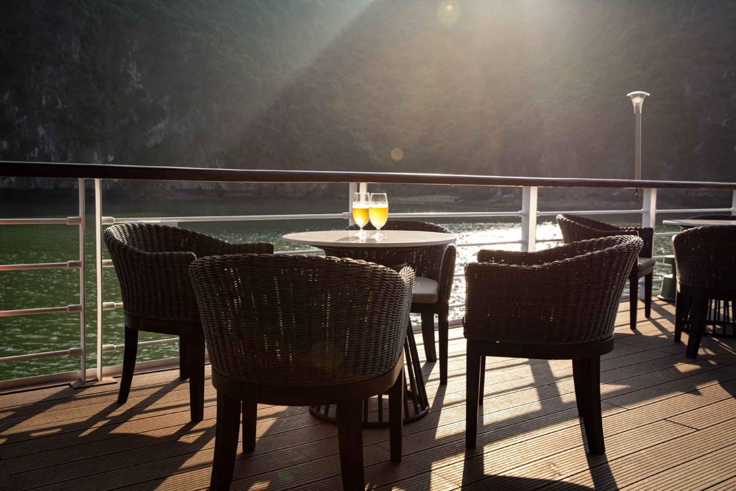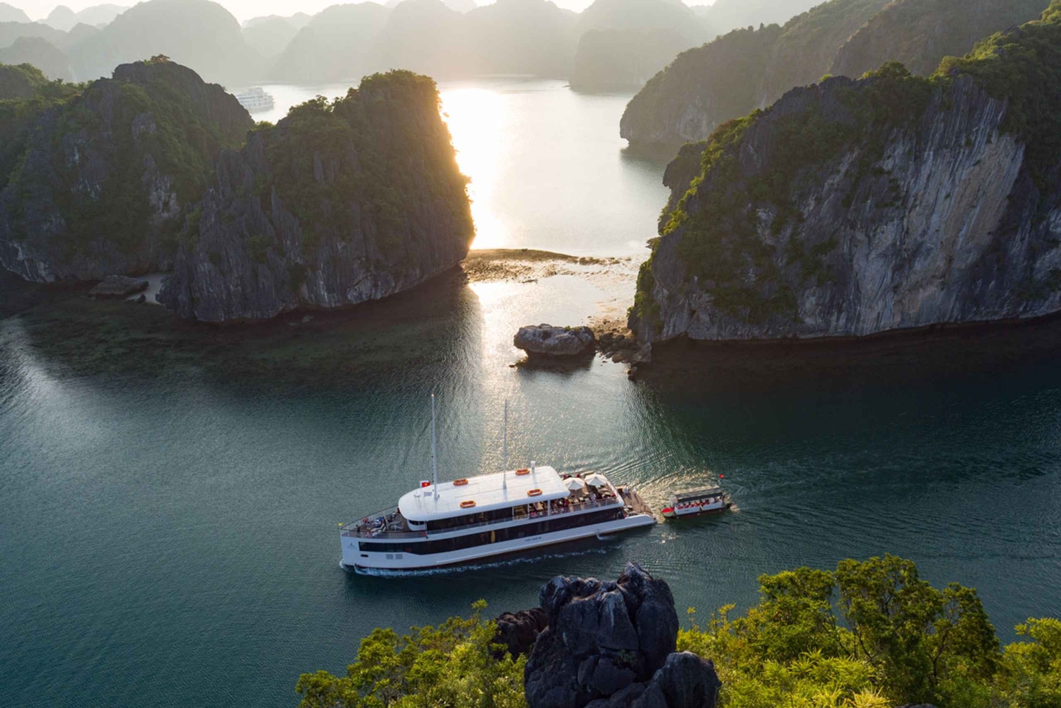 Witamy na pokładzie Jade Sails Cruise, gdzie odkryjesz zupełnie nowy poziom współczesnego luksusu. Przeżyj naprawdę wyjątkowe i niezapomniane wakacje dzięki naszemu skrupulatnie przygotowanemu planowi podróży, najwyższej klasy obsłudze, autentycznemu wystrojowi i przepysznej kuchni. Nasza elitarna żaglówka została zaprojektowana tak, aby płynnie wtapiała się w cuda natury Zatoki Halong, oferując luksusową otwartą przestrzeń, w której możesz się rozkoszować. Dzięki znakomitym funkcjom, takim jak restauracje, bar, taras słoneczny, bar pływacki, spa i siłownia, w każdej chwili tablica z pewnością zapadnie w pamięć.