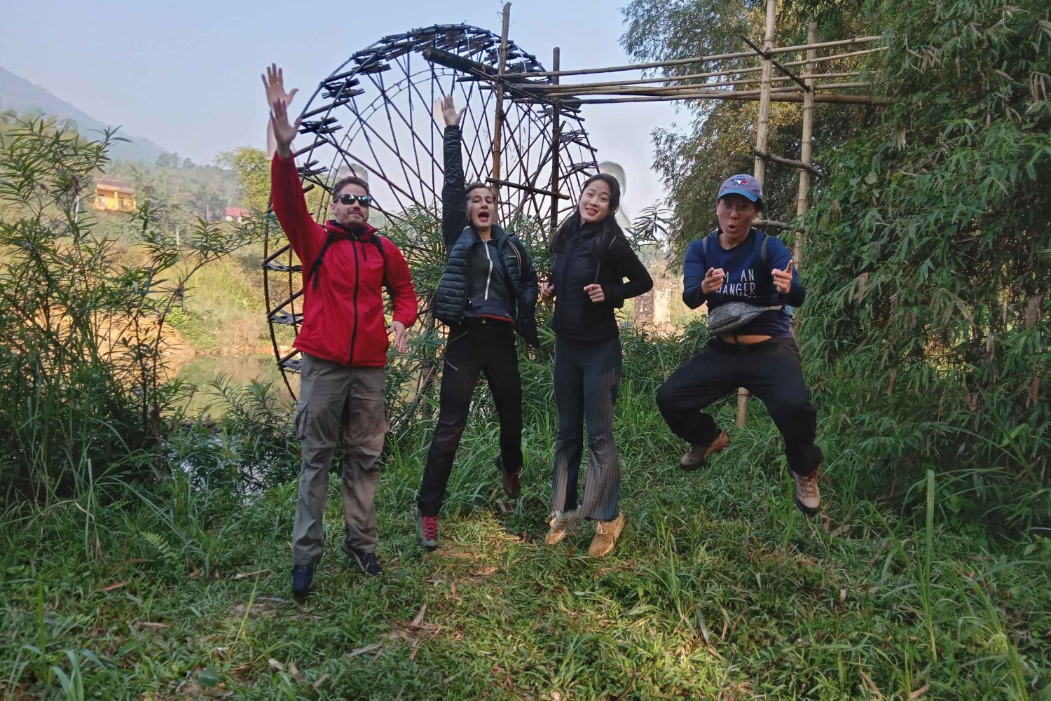 08H45MIN: Traslado para Ban Cong e início de uma caminhada de 2,5 km. Atravesse uma ponte suspensa para chegar a um dos vilarejos mais pitorescos de Pu Luong, por onde passa o maior riacho. Ao longo do rio, admire as paisagens deslumbrantes, os campos de arroz e a vida no vilarejo. Procure as rodas d'água gigantes, uma criação notável das minorias étnicas montanhosas do Vietnã. Nível de dificuldade 2/5.
