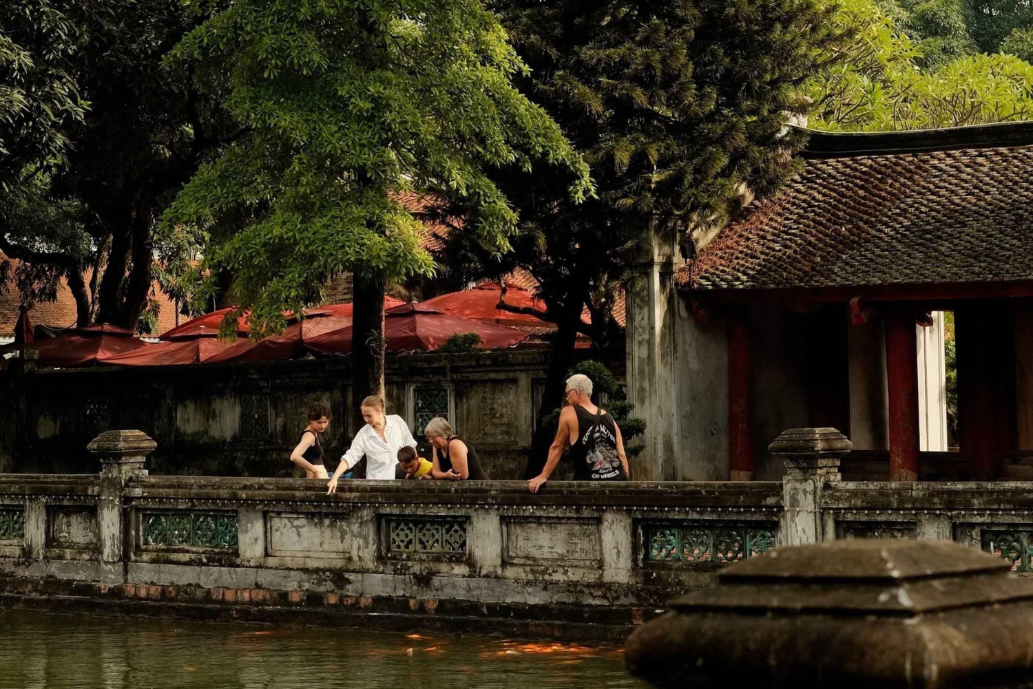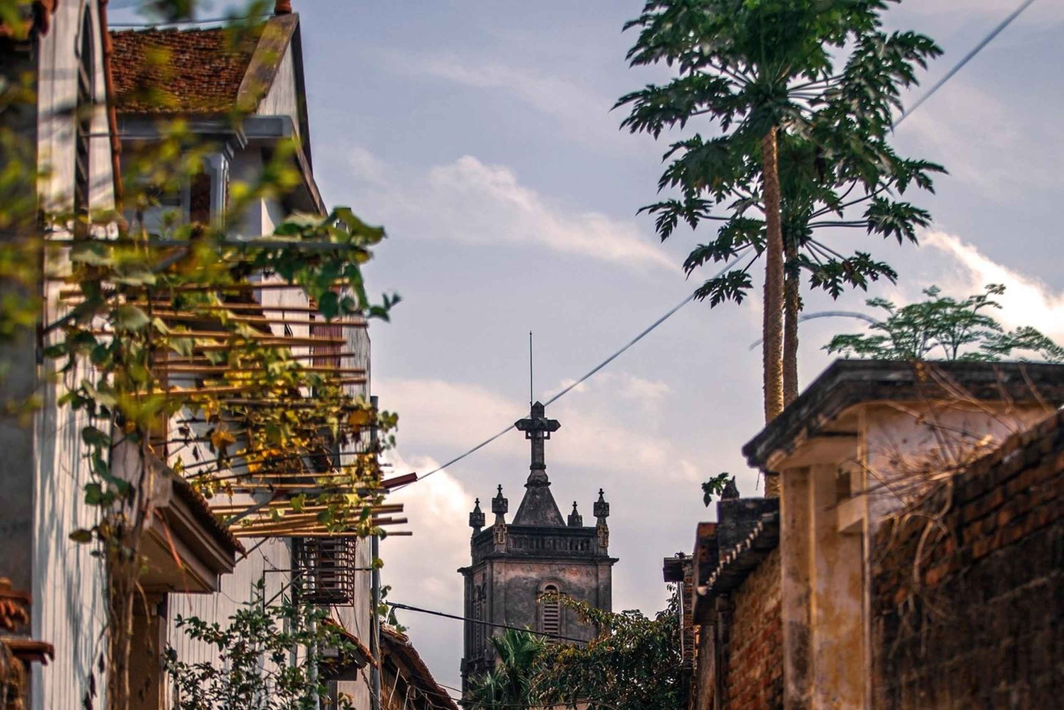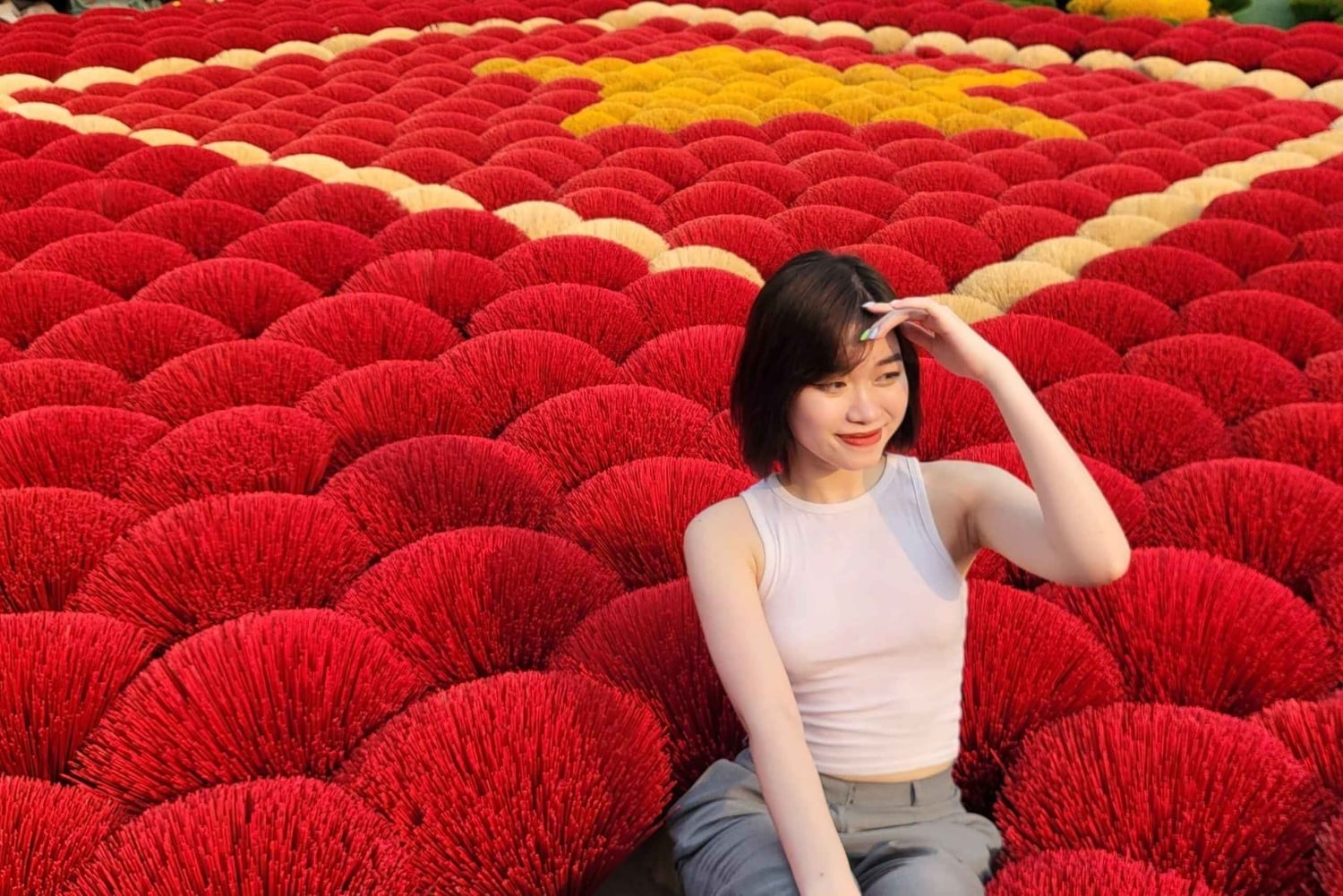 Opção de passeio privado: a antiga aldeia de Uoc Le Embarca numa viagem através do tempo e da tradição na aldeia de Ước Lễ, um lugar conhecido pelo seu artesanato de 500 anos de fabrico de giò chả (pasta de porco). A 30 km a sudoeste de Hanói, esta aldeia é um testemunho do legado duradouro da cultura vietnamita. Começa a tua exploração no antigo portão da aldeia, uma majestosa obra-prima arquitetónica da dinastia Mạc. Admira o seu design único, com uma torre de vigia e inscrições que refletem a rica história e os valores da aldeia. Passeia pela aldeia, onde vais encontrar casas antigas, poços comunitários e um mercado tradicional que funciona de manhã cedo. Estas estruturas, algumas com mais de 200 anos, mostram a típica paisagem rural do norte com figueiras-de-bengala, pátios e telhados de telhas vermelhas. Conhece os moradores locais que preservaram as suas casas ancestrais, mantendo a arquitetura original e os motivos escultóricos. Descobre a história da aldeia e a arte de fazer pasta de porco, um ofício que tem sido transmitido de geração em geração. Deixa-te envolver pelo charme rústico da aldeia de Ước Lễ, onde o tempo parece parar, e experimenta a essência da cultura vietnamita. Opção de excursão de grupo de MEIO DIA: visita a 2 aldeias: chapéu cónico e aldeia de artesanato de incenso + rua do comboio (opcional) Duração: ~ 6 horas Manhã das 7:45 às 13:30 À tarde, das 11:45 às 17:30 Começa com uma recolha no Bairro Antigo de Hanói e segue para Chuong, uma aldeia conhecida pelo artesanato de chapéus cónicos há mais de 300 anos. Vê como são feitos os chapéus cónicos e decora um chapéu pintando-o e leva-o para casa como lembrança. Partida para a aldeia de Quang Phu Cau, que produz incenso há mais de 100 anos. Dá um passeio até ao centro da aldeia e vê como os habitantes locais fazem incenso à escala familiar e artesanal. Conhece uma família especializada em tingir varas de incenso e aprecia os coloridos feixes de incenso. De volta ao centro da cidade. Primeiro local de saída: Rua do Comboio de Hanói. Se não quiseres sair aqui, espera no carro.