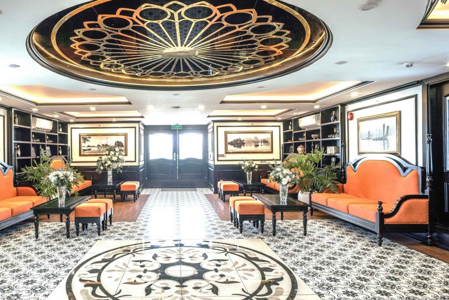 Chegada à Baía de Ha Long: À chegada, relaxa no lounge do Porto Internacional de Cruzeiros antes de seres calorosamente recebido a bordo do cruzeiro de 5 estrelas para explorares a Baía de Ha Long.