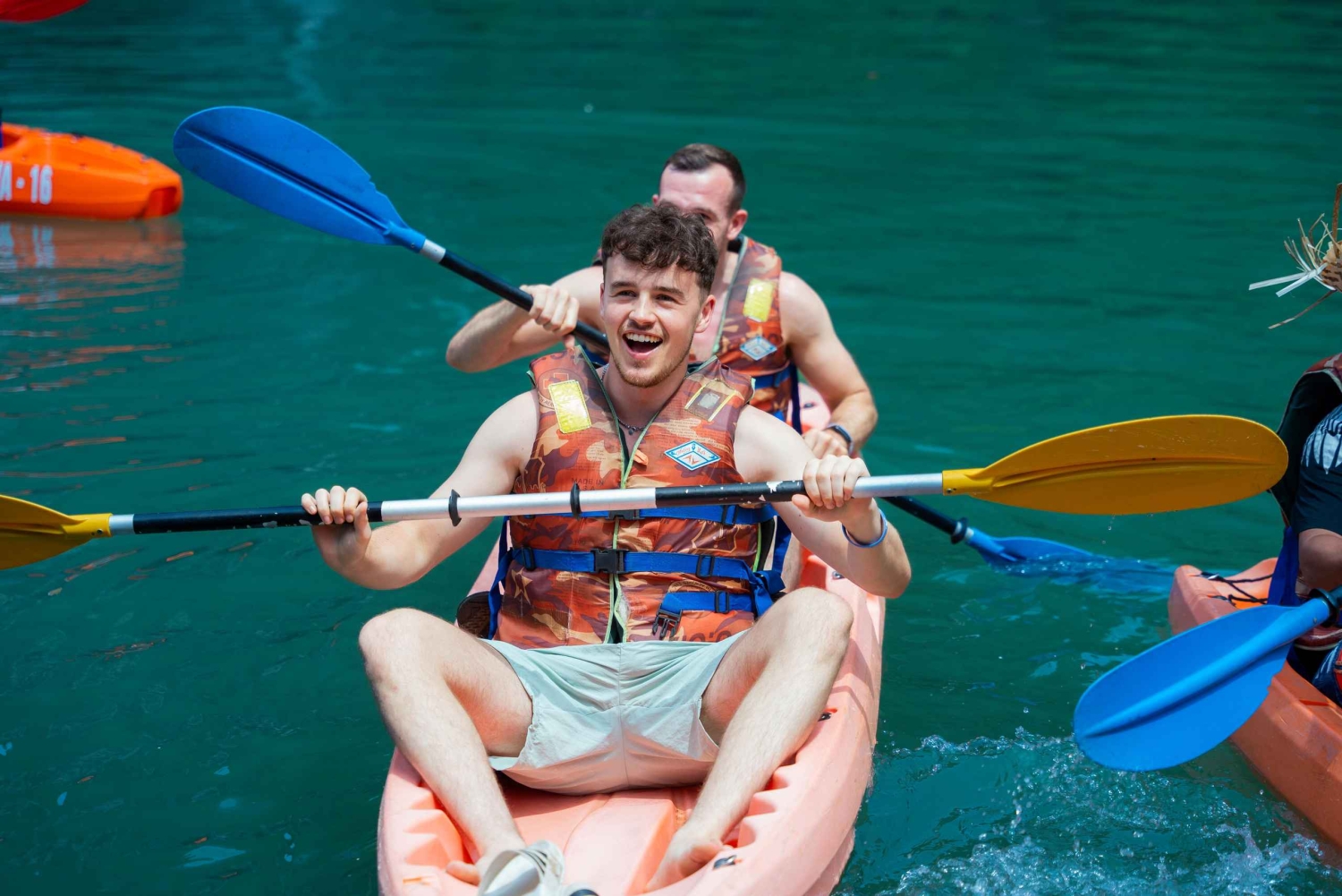 14h45: Escolhe entre andar de caiaque ou fazer um passeio de barco de bambu pela Gruta de Luon para descobrir a lagoa serena.