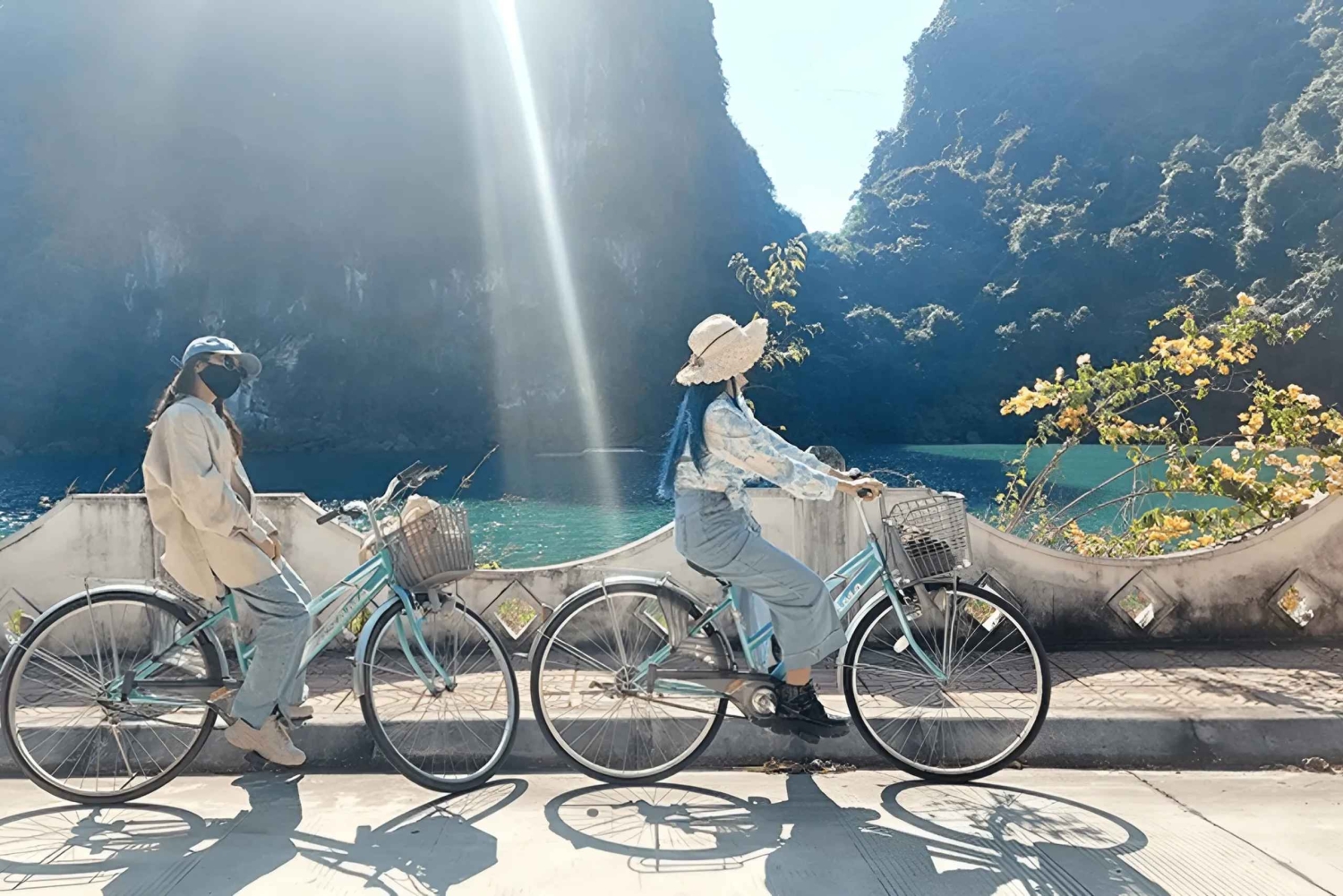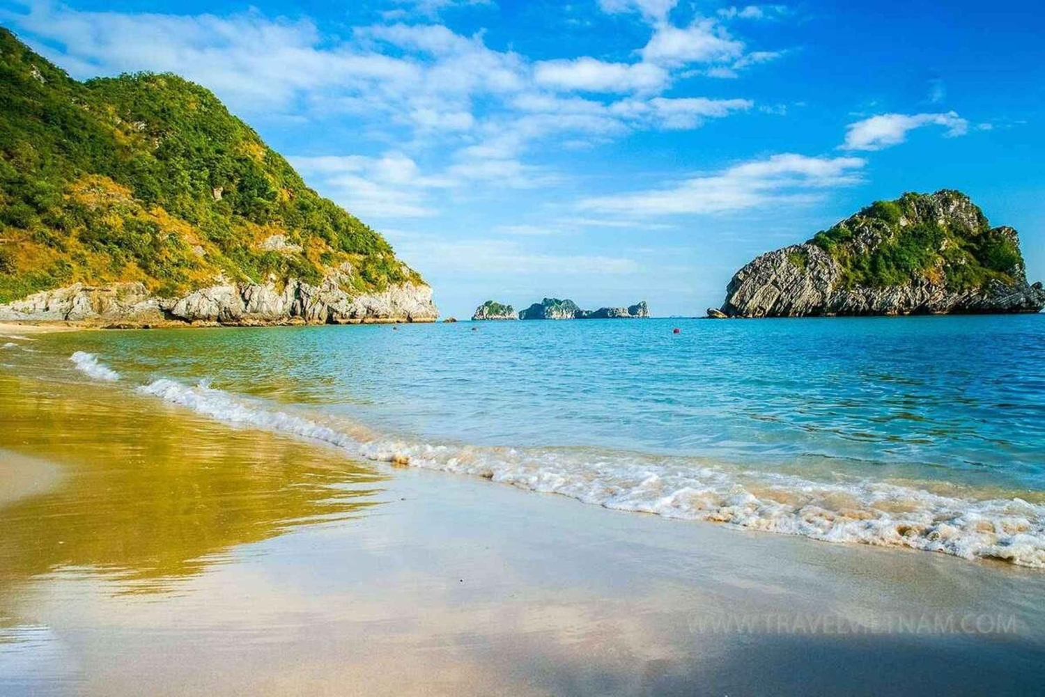 Explora Cat Ba, uma ilha pacífica com poucos turistas, uma das mais belas praias imaculadas do Norte, experimenta andar de caiaque na aldeia de águas azuis límpidas e pedala por paisagens tranquilas