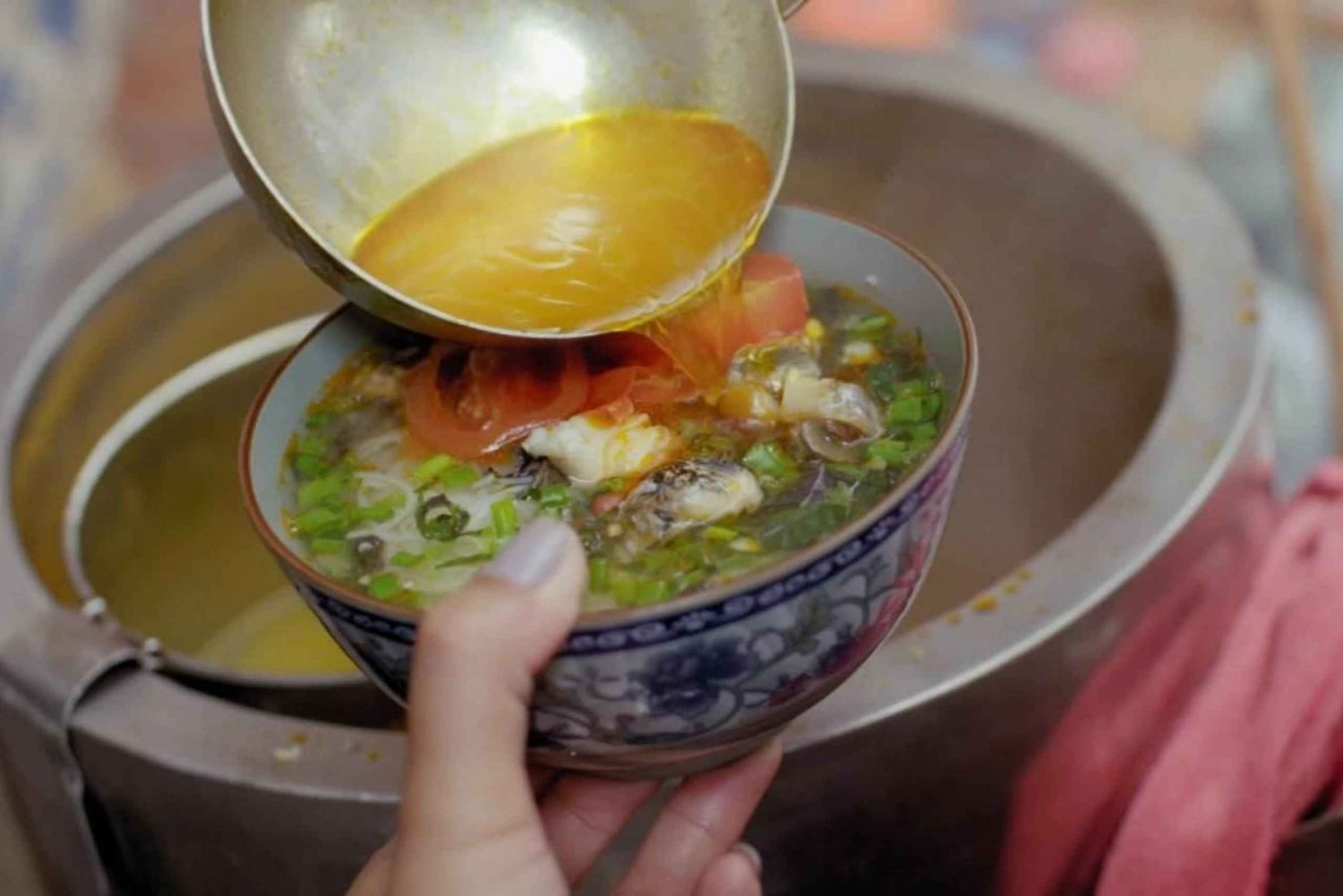 Em seguida, passeia à volta do Lago Oeste, passando por alguns dos imóveis mais caros do Vietname, com várias paragens para tirar fotografias. Paragem para almoço. Desfruta de um almoço numa loja de comida local. Depois do almoço, serás levado a um café infame, onde fazem o nosso tradicional café com ovos vietnamita. Bebe um gole e o sabor vai levar-te para longe. No final do tour guiado, o guia deixa-te no teu hotel