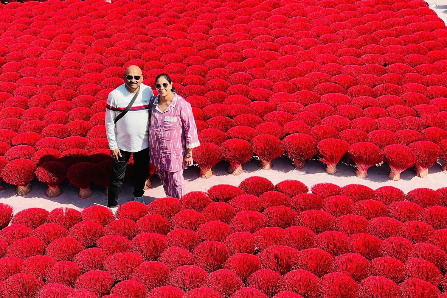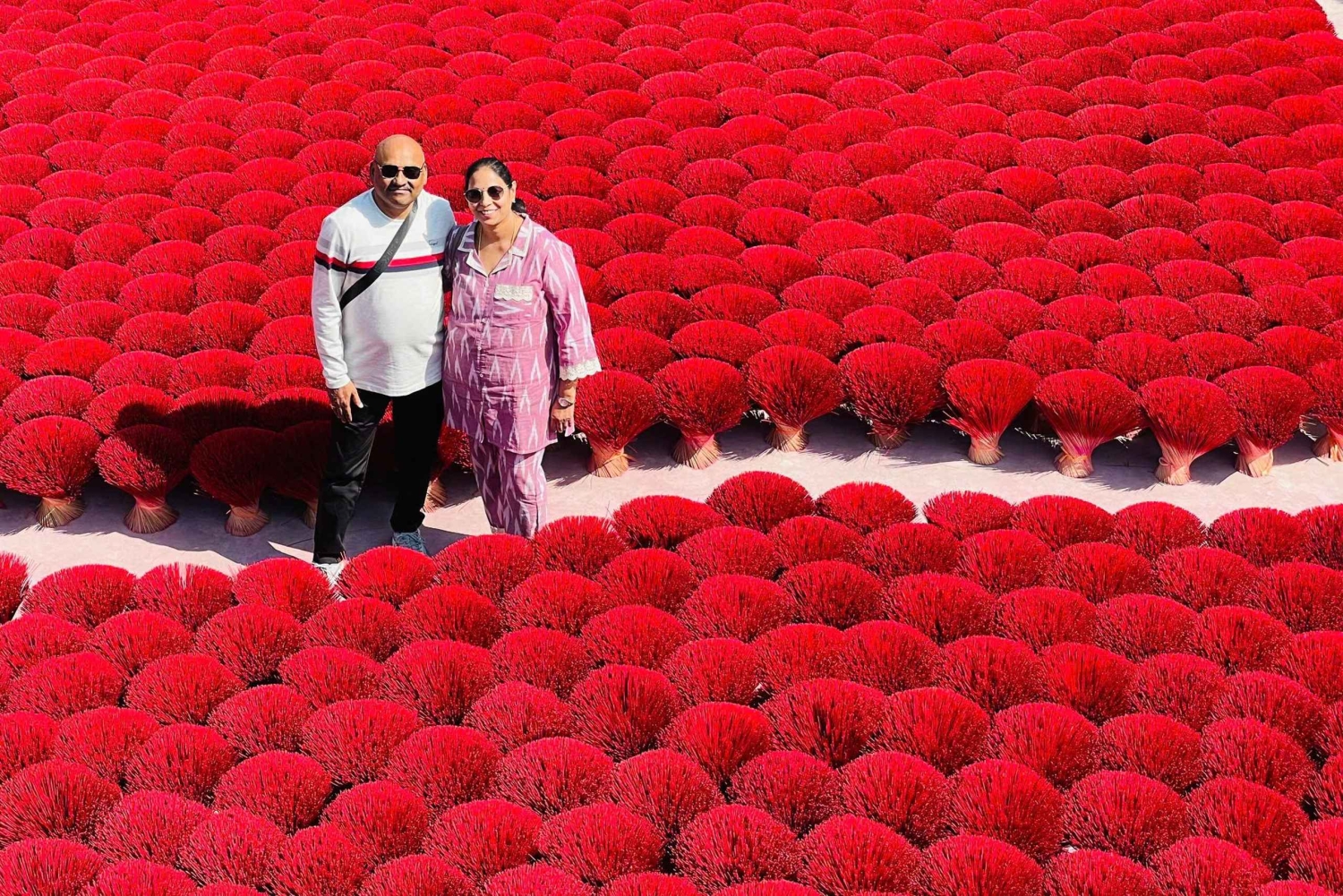 O guia de turismo começa o dia por te ir buscar ao teu hotel em Hanói. A cerca de uma hora de carro de Hanói (cerca de 30 kms), os aldeões de Quang Phu Cau produzem aqui o tradicional incenso vermelho vivo, o que permite obter imagens deslumbrantes em todas as fases do processo. Como criadores desta excursão fotográfica, podemos garantir-te a melhor experiência em Quang Phu Cau e as imagens que a comprovam. Passeia pelas ruelas estreitas de Quang Phu Cau, onde o ar está impregnado com o aroma encantador do incenso meticulosamente trabalhado.