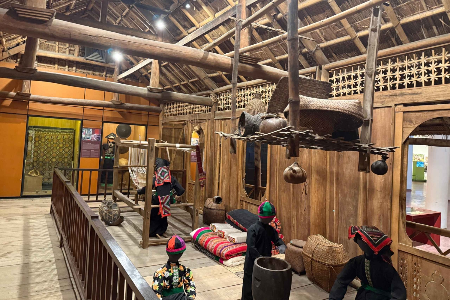 Depois, segue para a Aldeia Nacional do Vietname para a Cultura Étnica e Turismo em Dong Mo, Sơn Tây. Explora uma aldeia cultural lindamente construída que representa os 54 grupos étnicos do Vietname. Os destaques incluem a Área de Cultura Gong das Terras Altas Centrais, casas tradicionais dos povos Thai, Mường, Ê Đê e H'Mông, mini-museus, oficinas de artesanato e espetáculos culturais (dependendo do dia).
