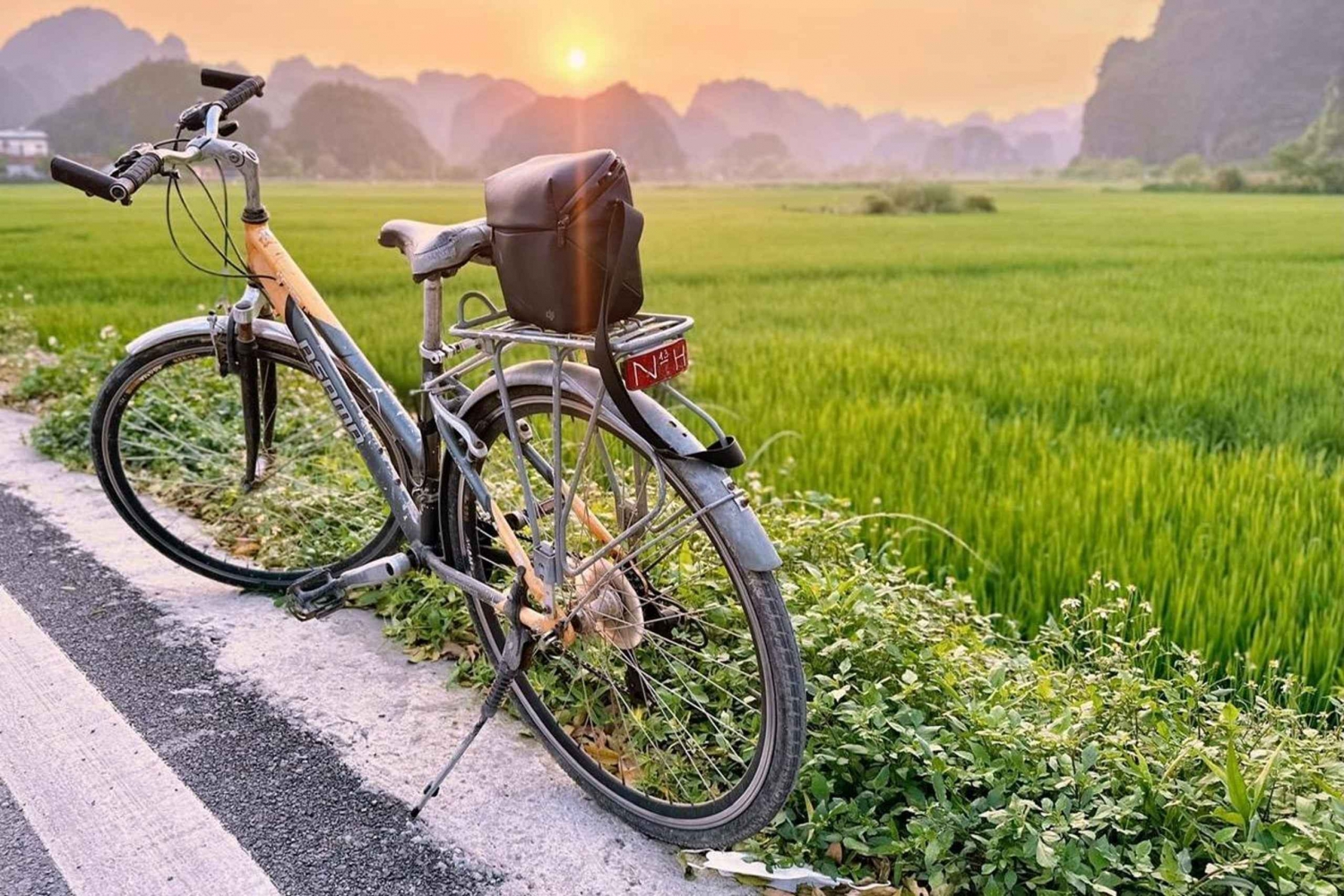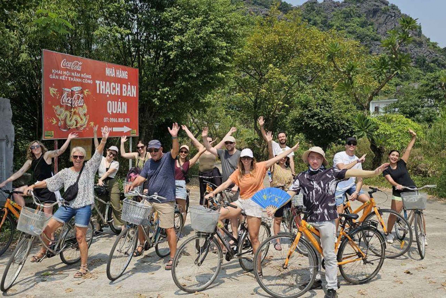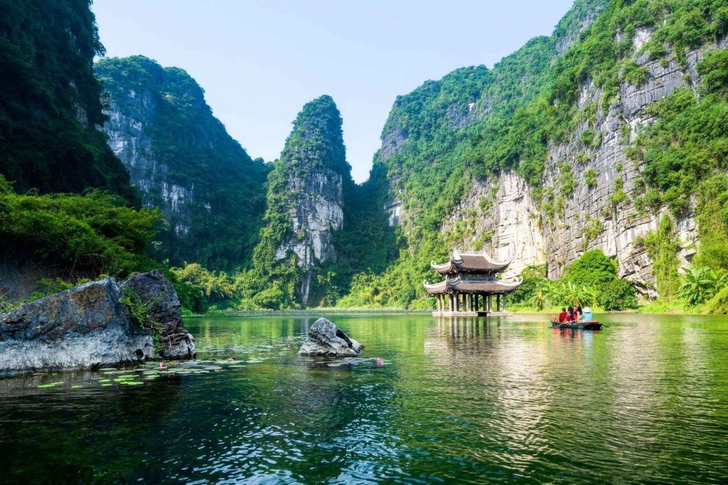 Passe um dia inteiro em Ninh Binh explorando Hoa Lu, a antiga capital. Pedale por trilhas pitorescas, faça um cruzeiro pelas cavernas de Trang An e conquiste o mirante icónico no topo da Caverna Mua.