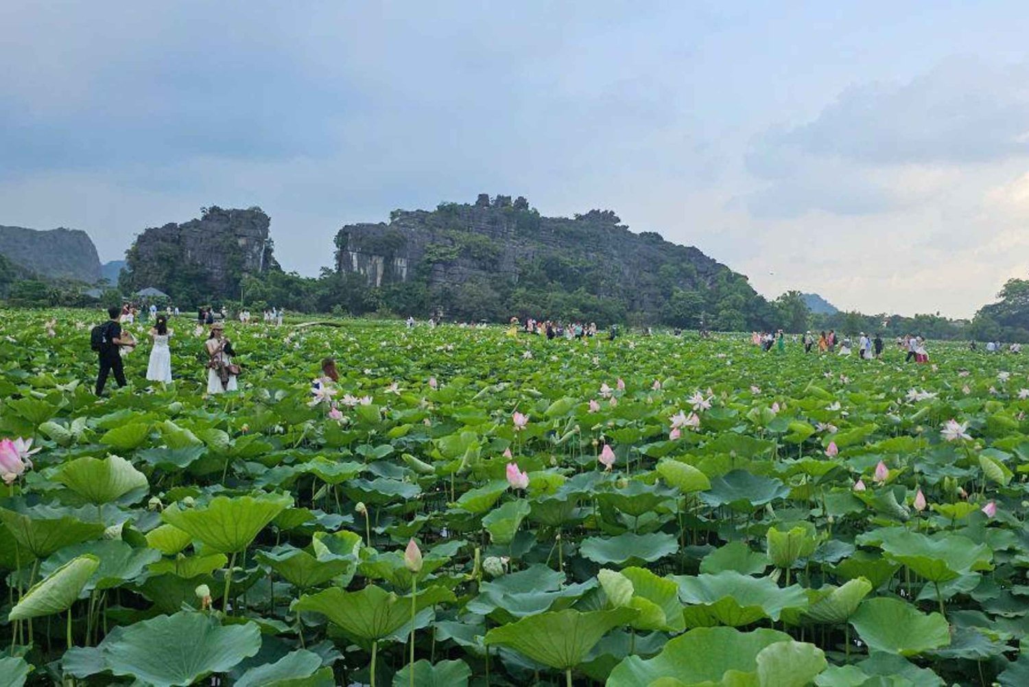 07h15 - 8h00: Recolha no seu hotel na zona do bairro antigo e partida para Ninh Binh. Devido à proibição de os autocarros apanharem passageiros em algumas ruas entre as 6h30 e as 8h30 a partir de 1 de março de 2025, podemos precisar que venhas a um dos nossos pontos de encontro, dependendo da tua localização, para esperar por nós. Agradecemos o teu apoio.